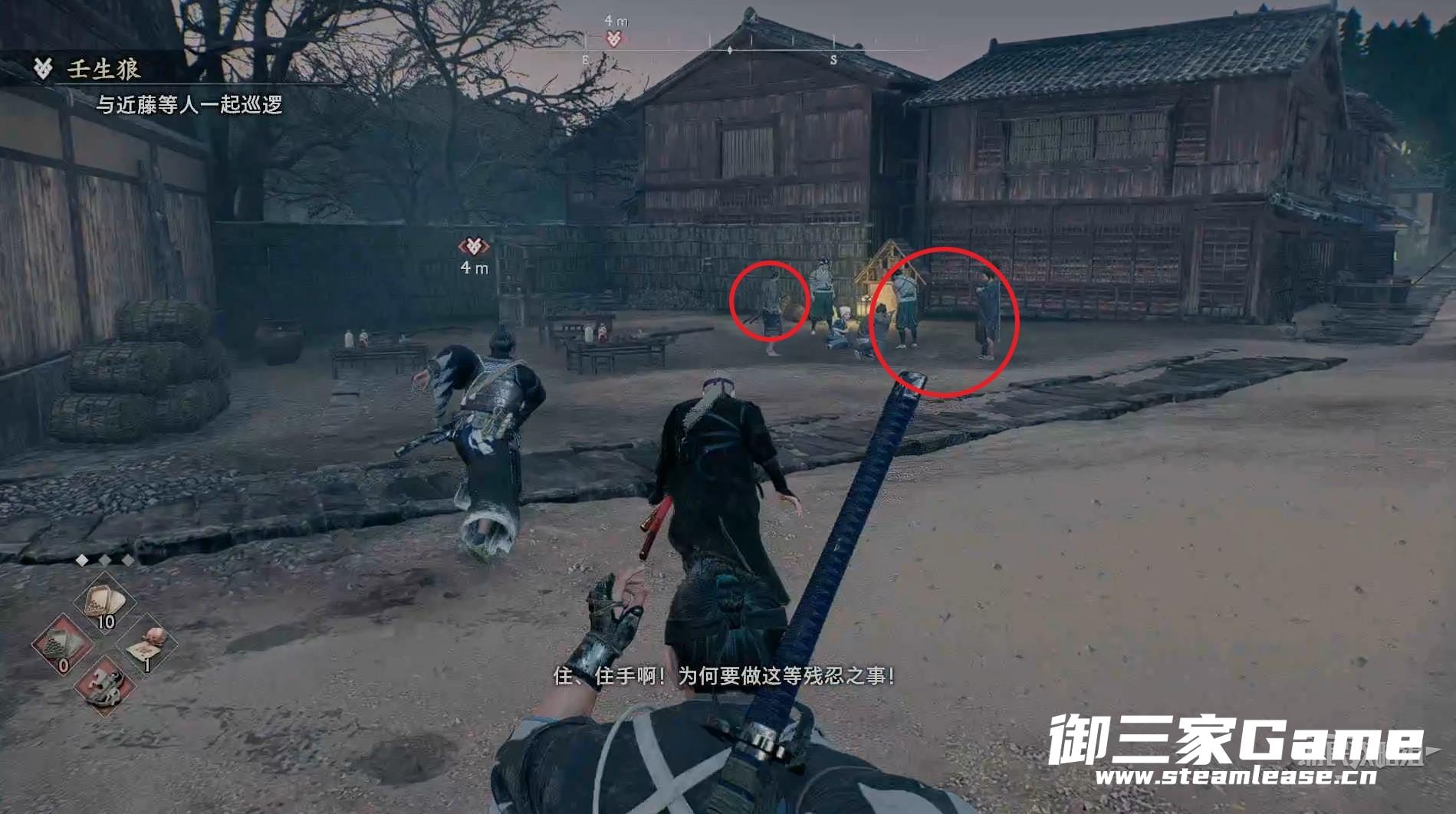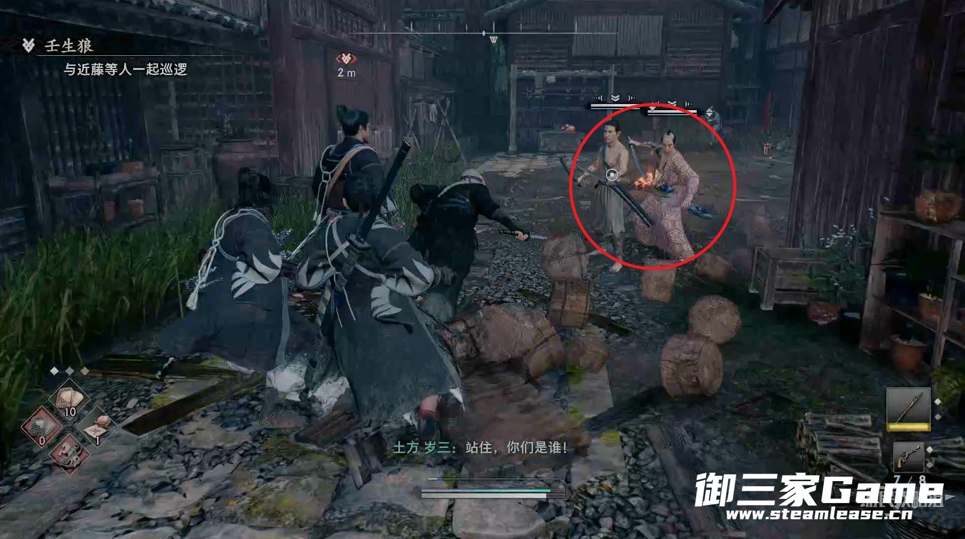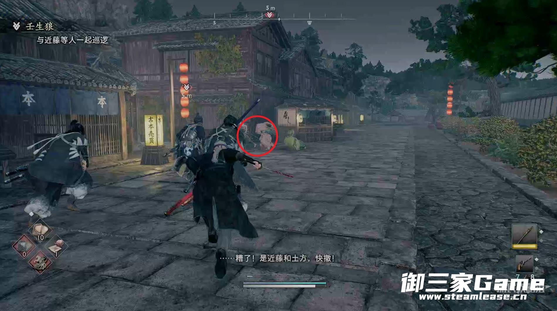 随后的路程上会遇到几个认识新选组大哥的人,跟着他们跑进胡同里。