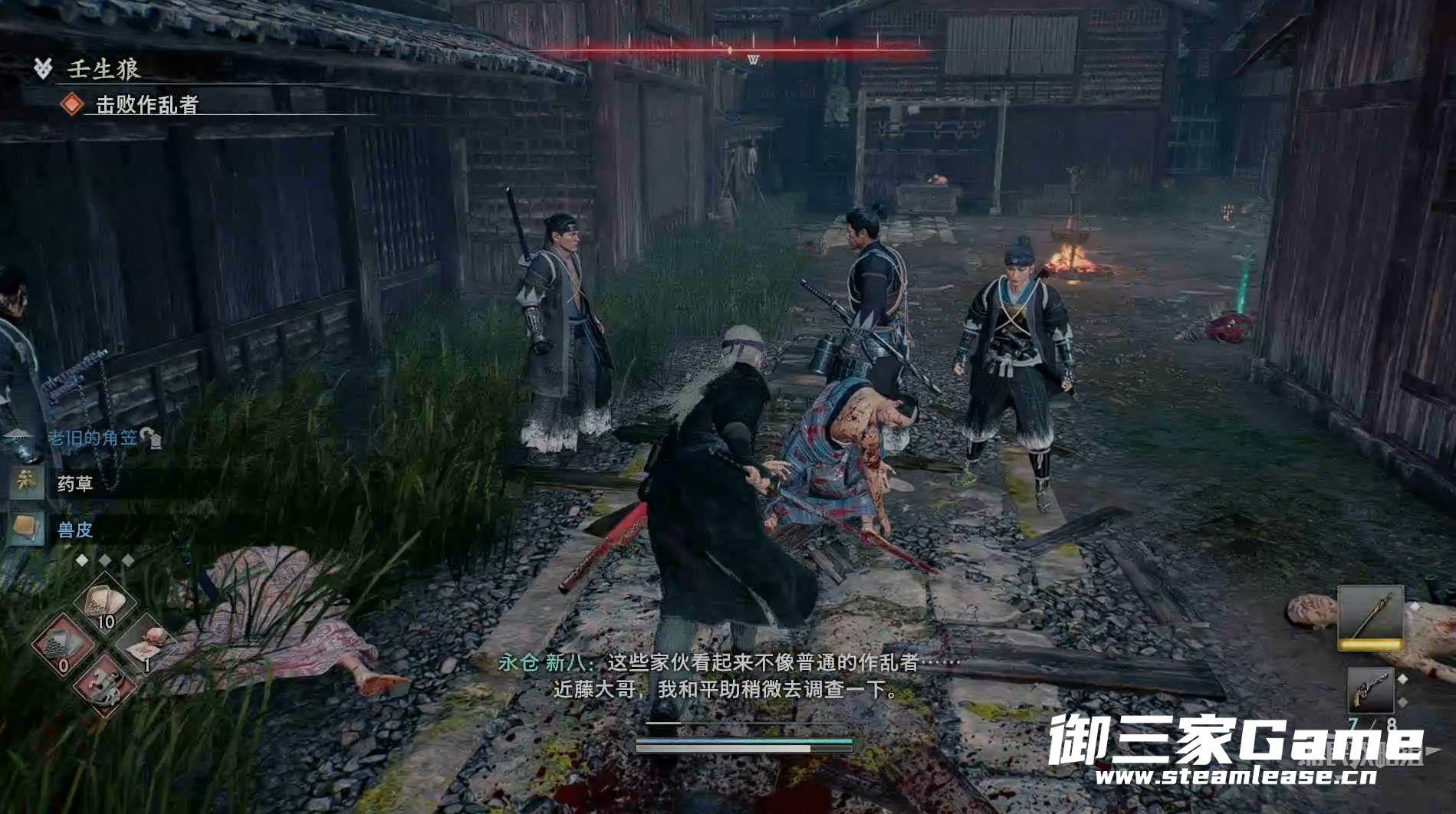 将其全部干掉后永仓新八觉得事情有些不对劲与平助脱离队伍前去调查,而我们继续跟着近藤勇巡逻街道。