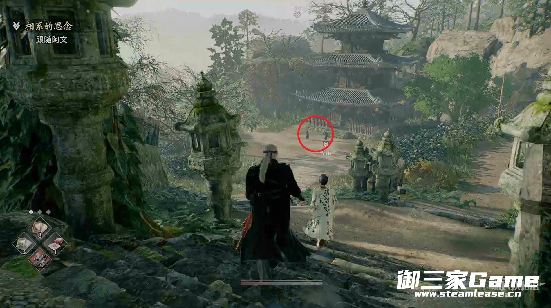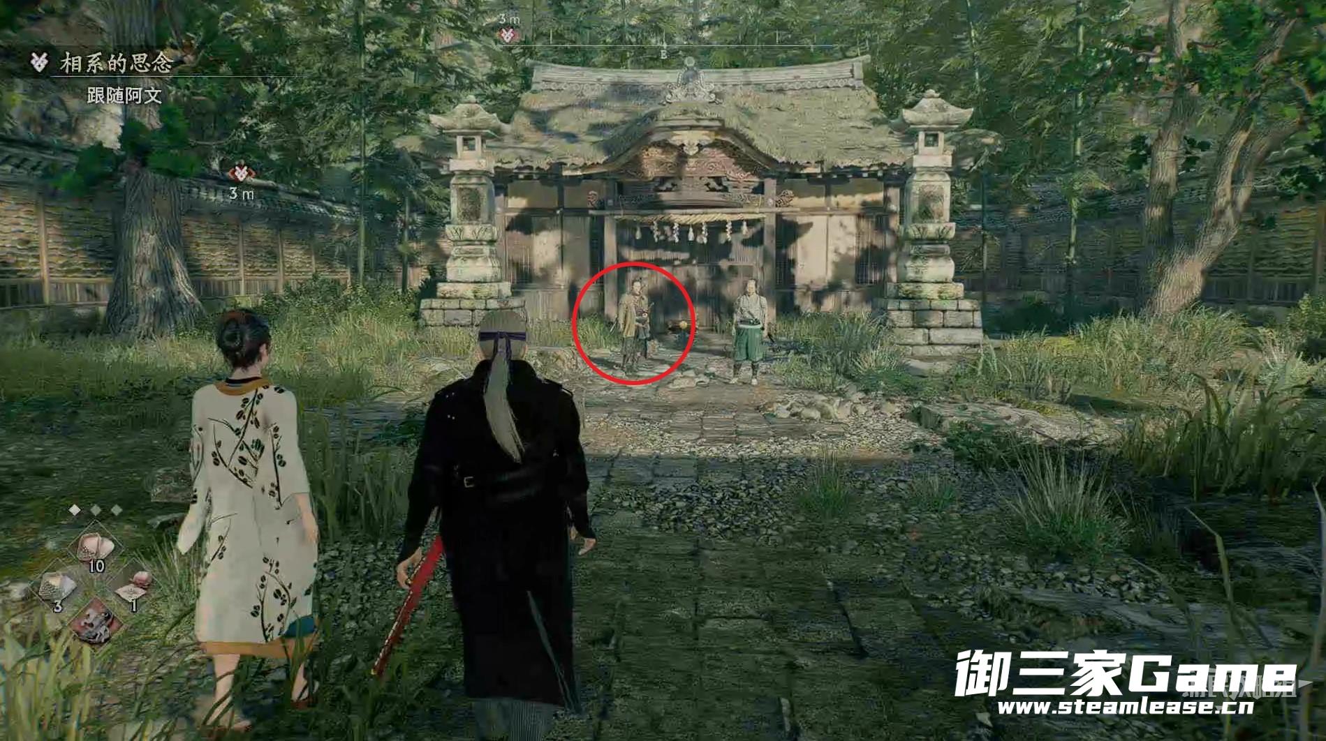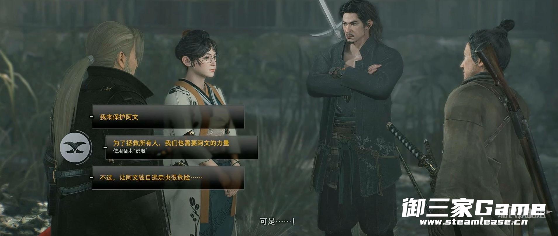 战胜中冈后接到了关于新选组入侵的消息,这里我们需要保护阿文,对话结束后阿文会带着我们去找其他人。