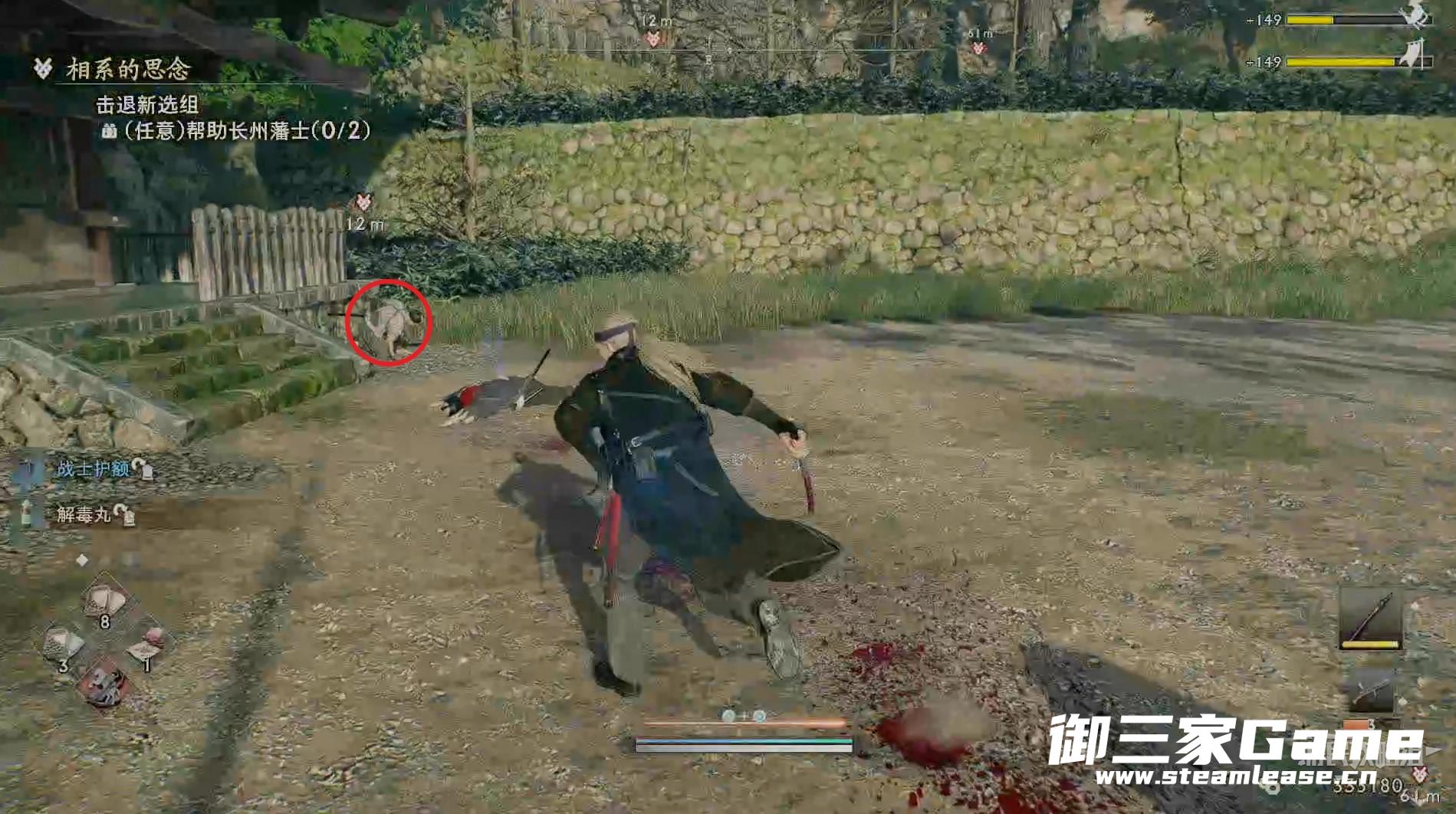 将俩人击败后,旁边可以帮助一个长洲藩士。