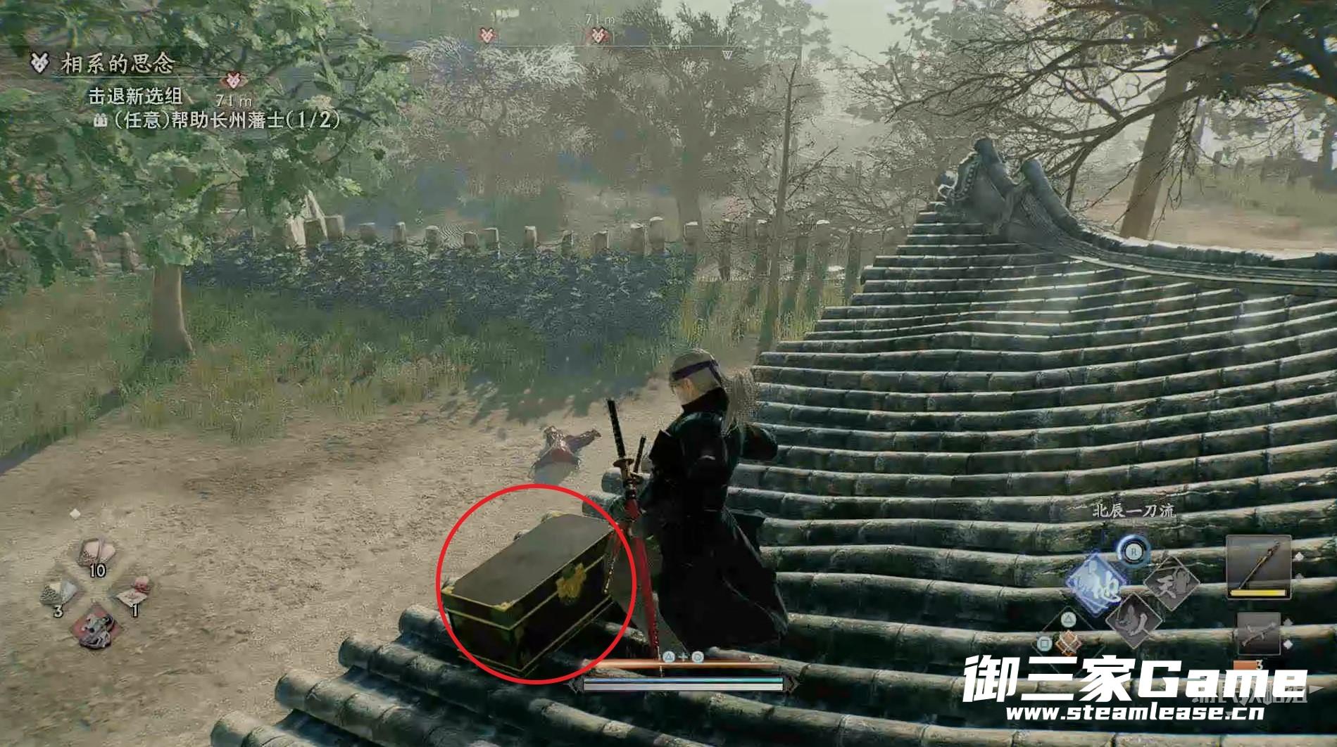 清理掉附近的敌人与右侧小屋旁的长洲藩士对话,接着进入小屋,里面有一个宝箱可以开启。