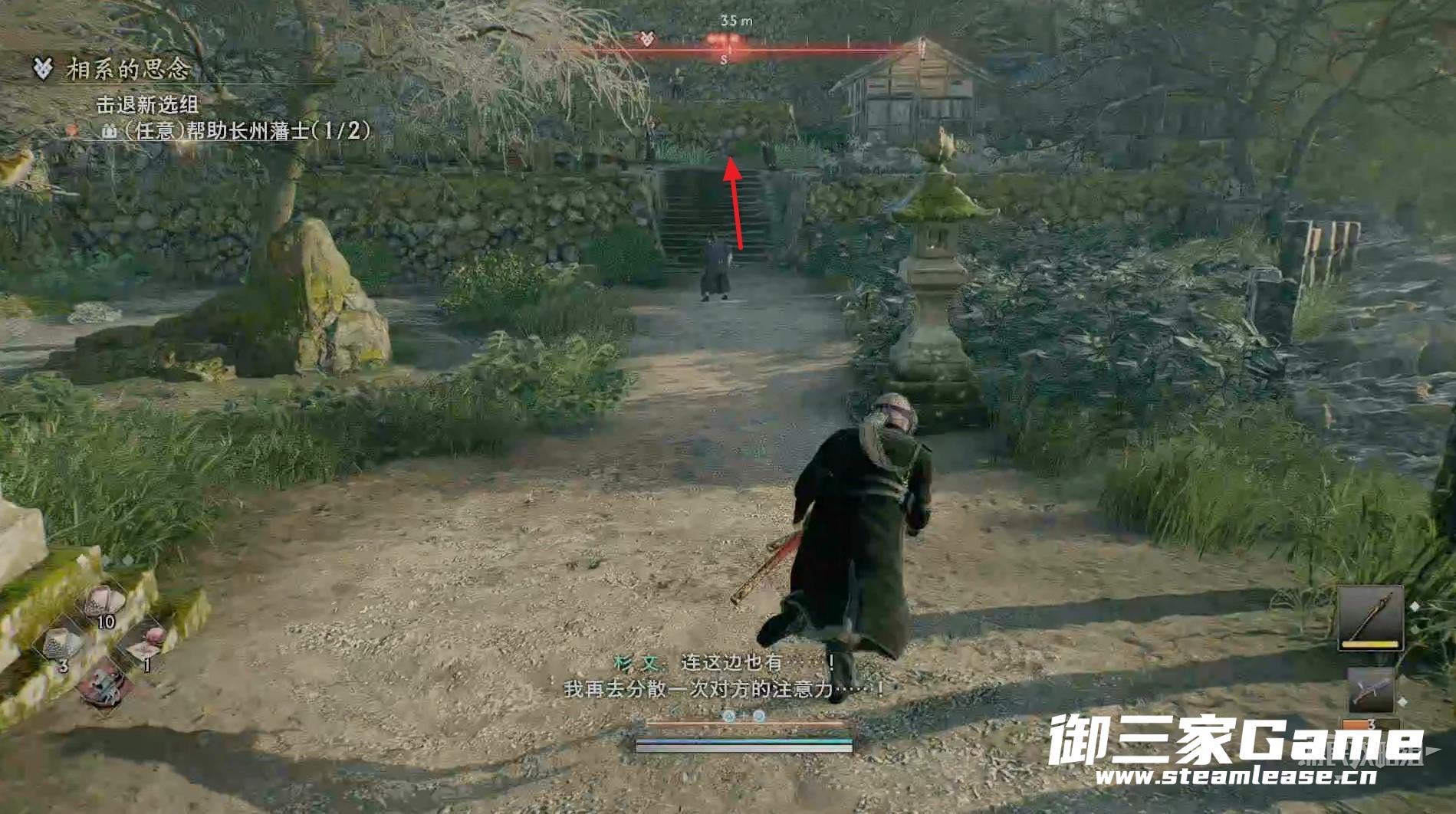不远处就能看到第二波敌人,而第二个需要帮助的长洲藩士也在右前方。