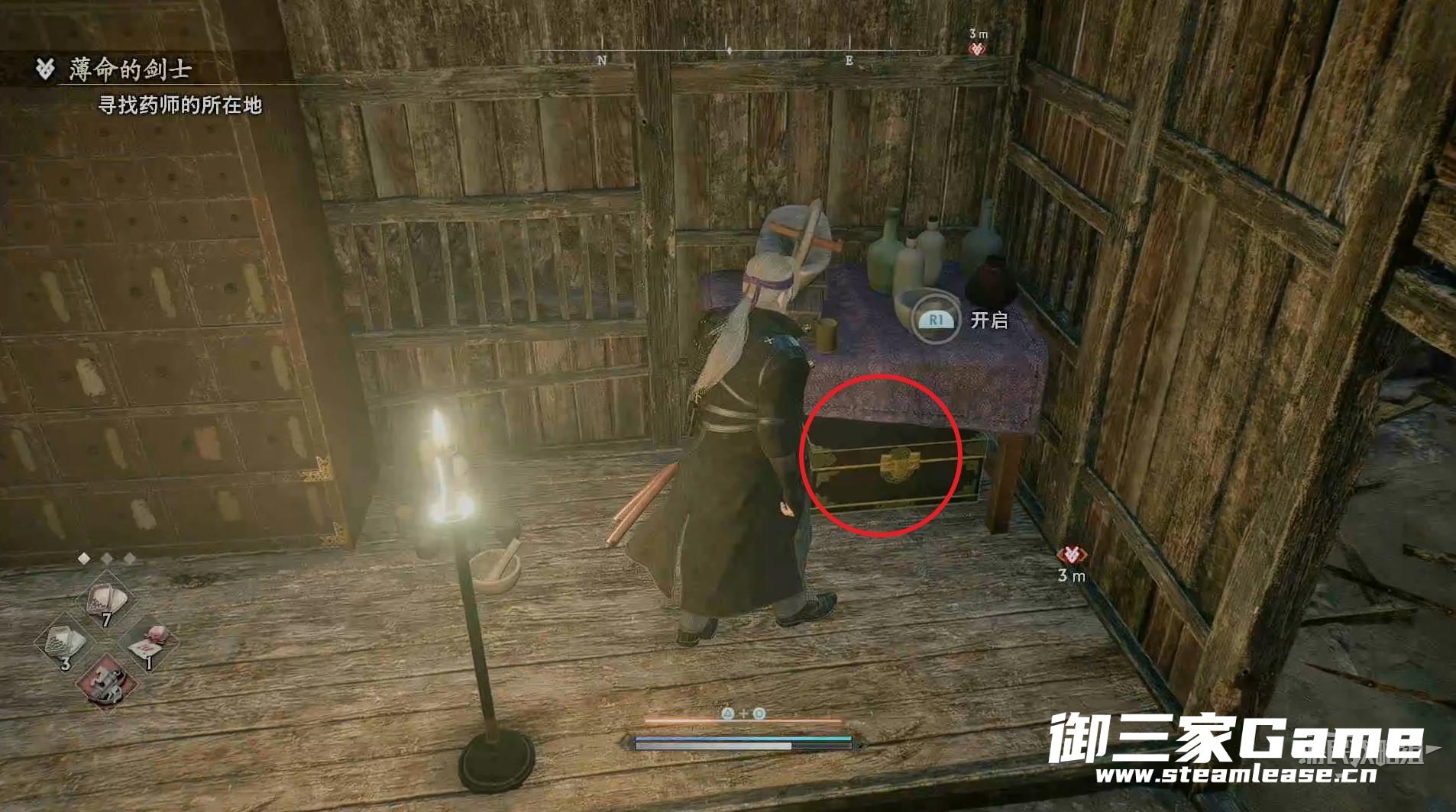 拾取右侧桌子上的西方药瓶即可进入剧情,剧情结束完成此任务。