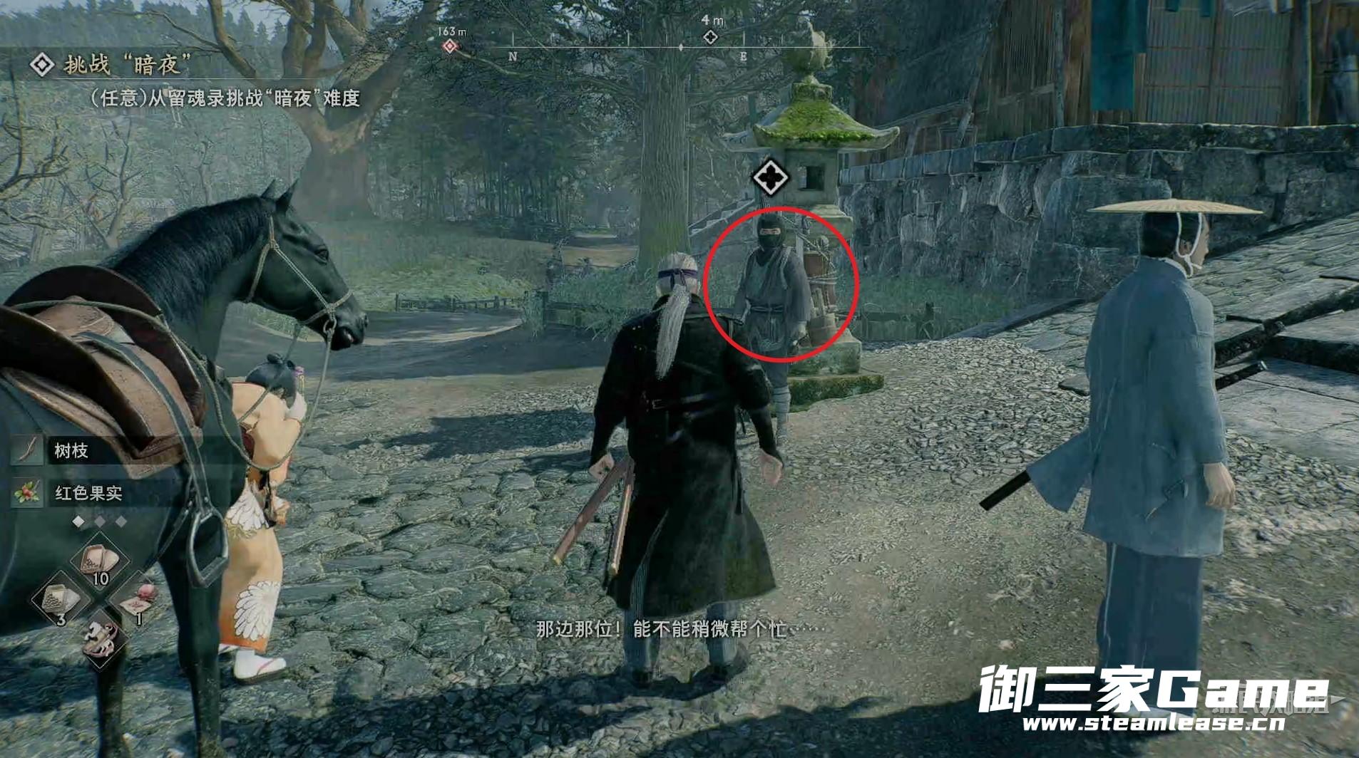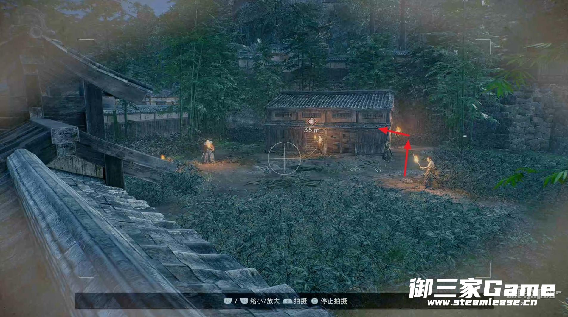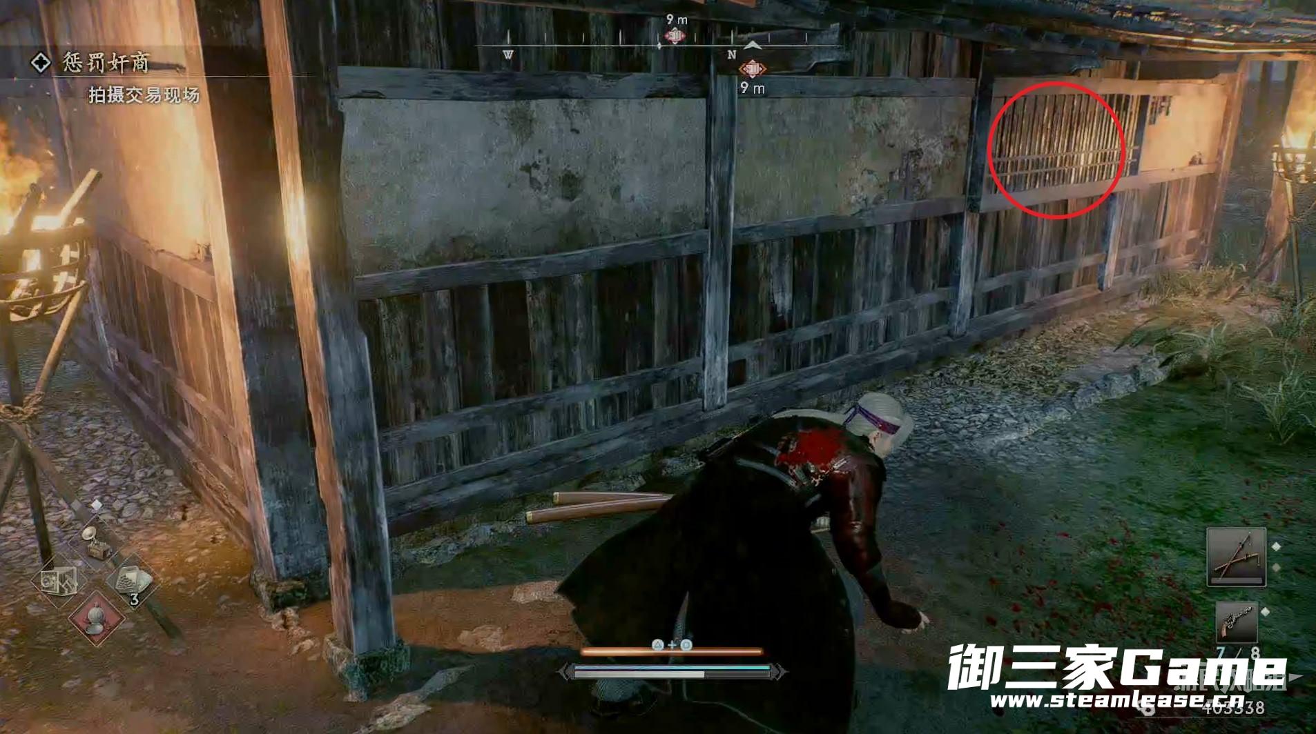 对话结束会直接传送到任务地点,干掉周围所有敌人,绕道目标房子的后面。