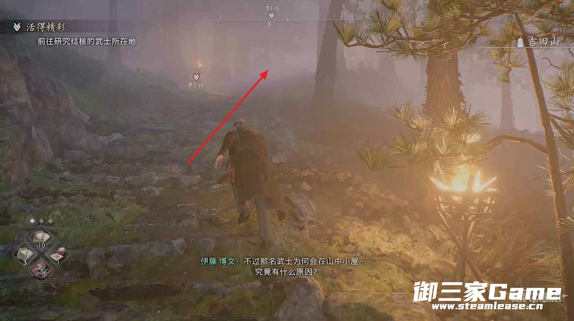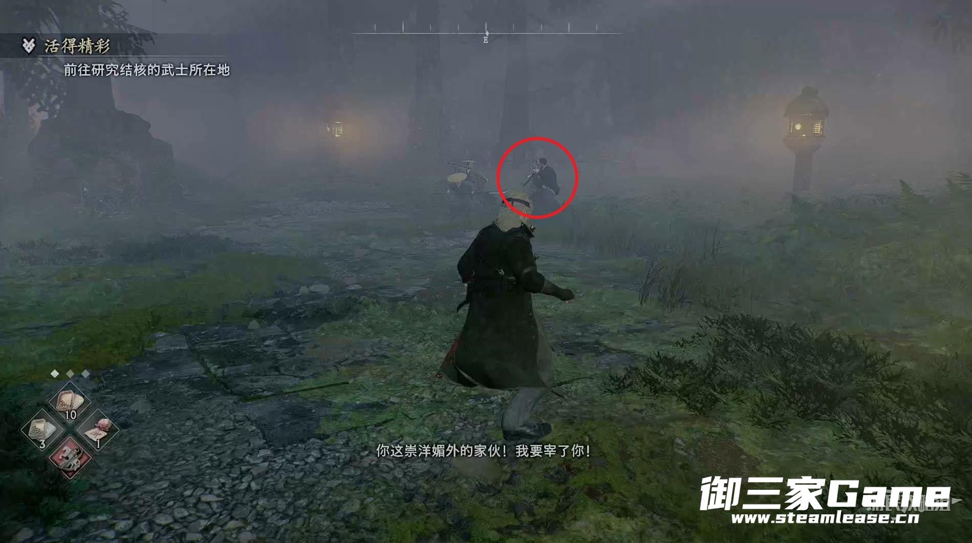 帮助NPC击退这些浪人,他表示新药在山中小屋里。