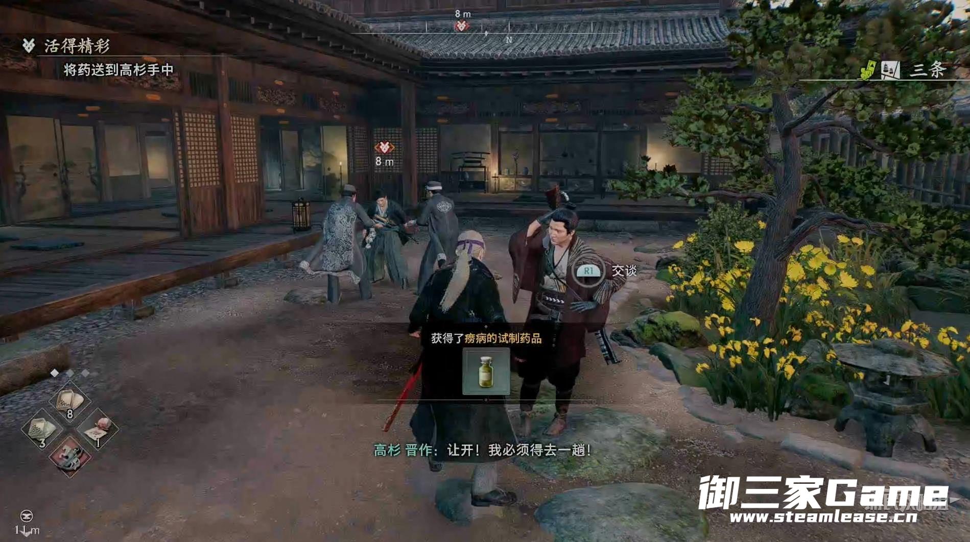 击败BOSS后,NPC会把药直接交给我们,此时回到高杉晋作的位置。
