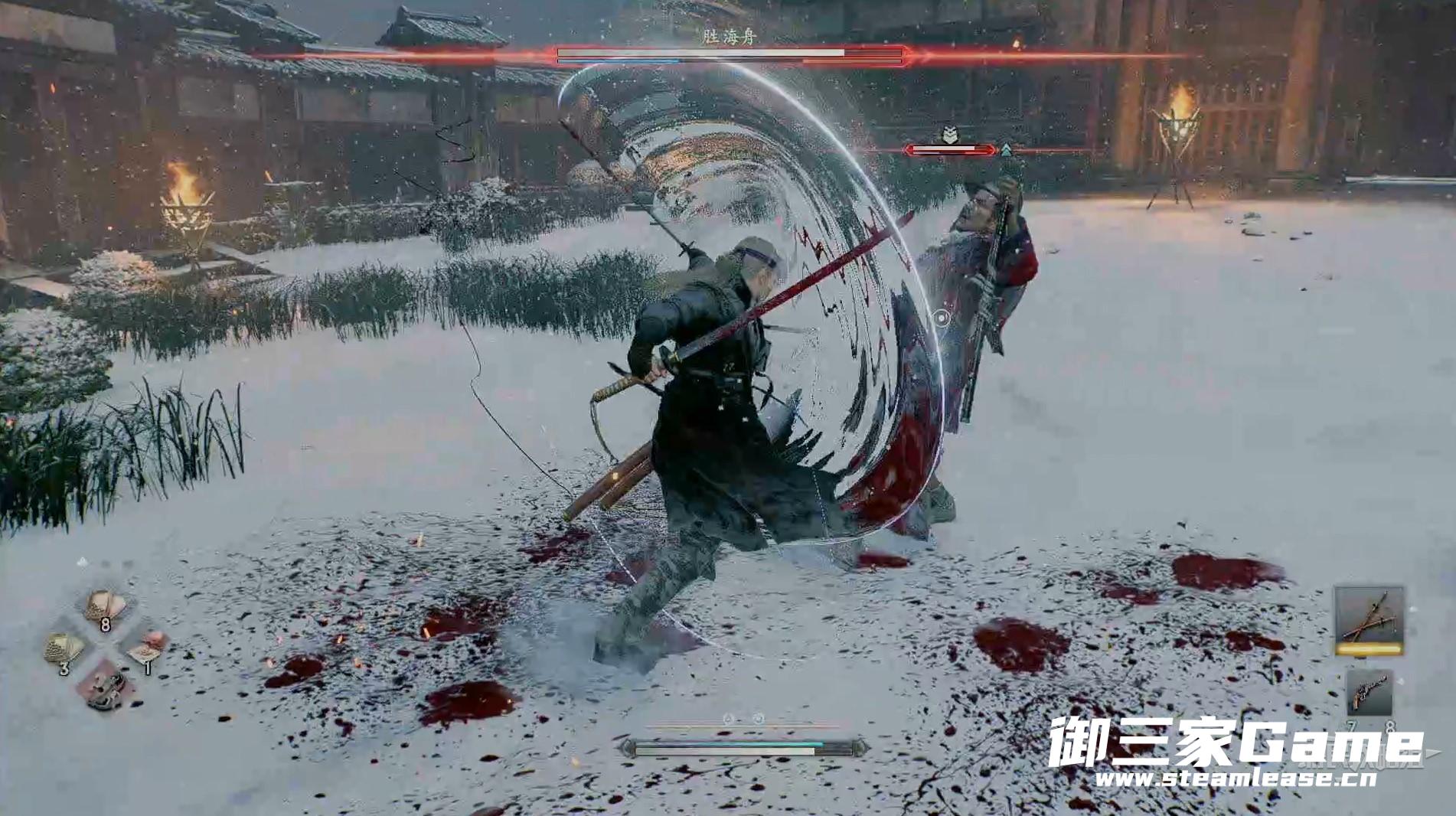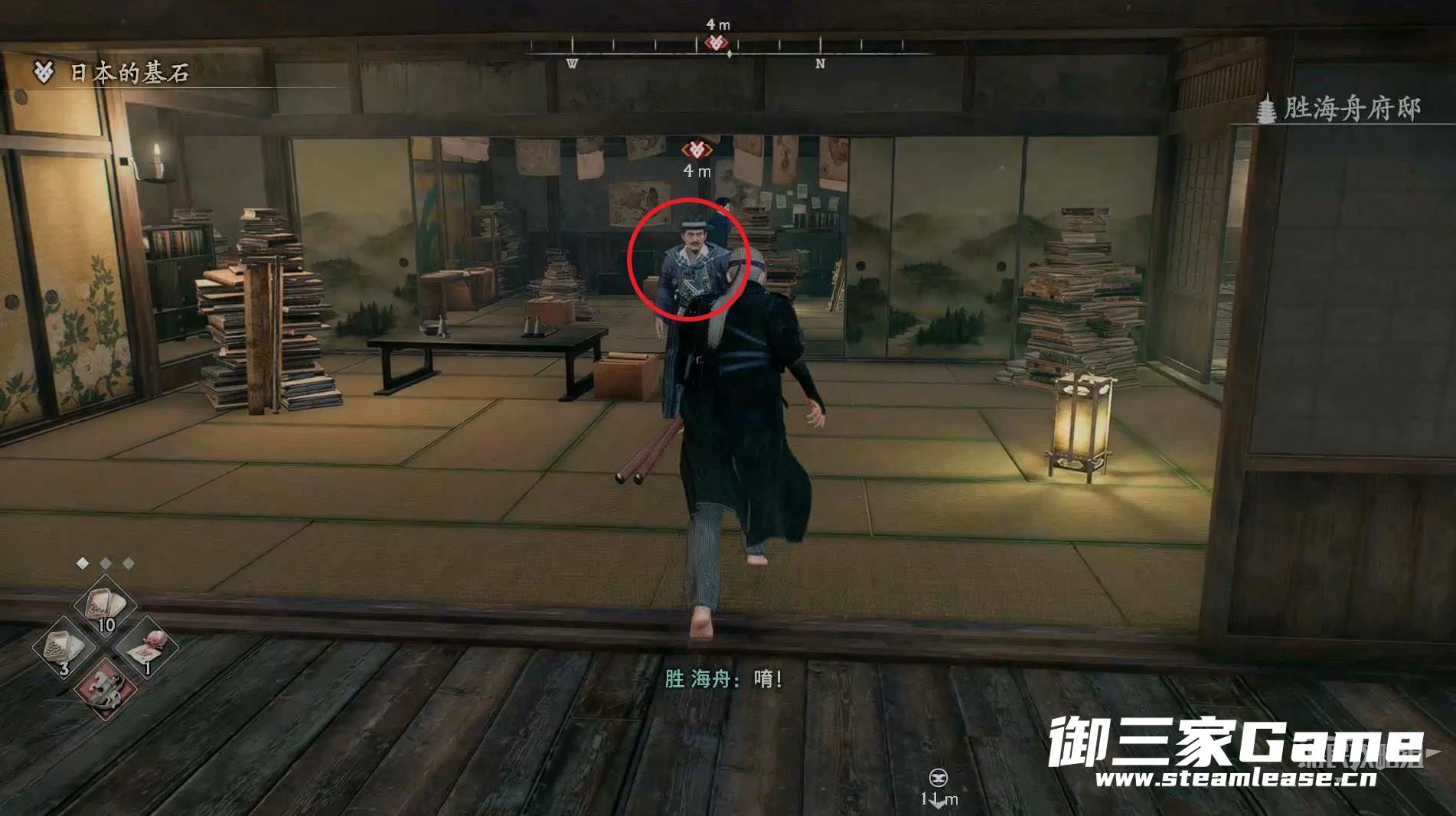 这场战斗要小心胜海舟扔出的闪光弹,一旦被闪到我们就会陷入被动状态。