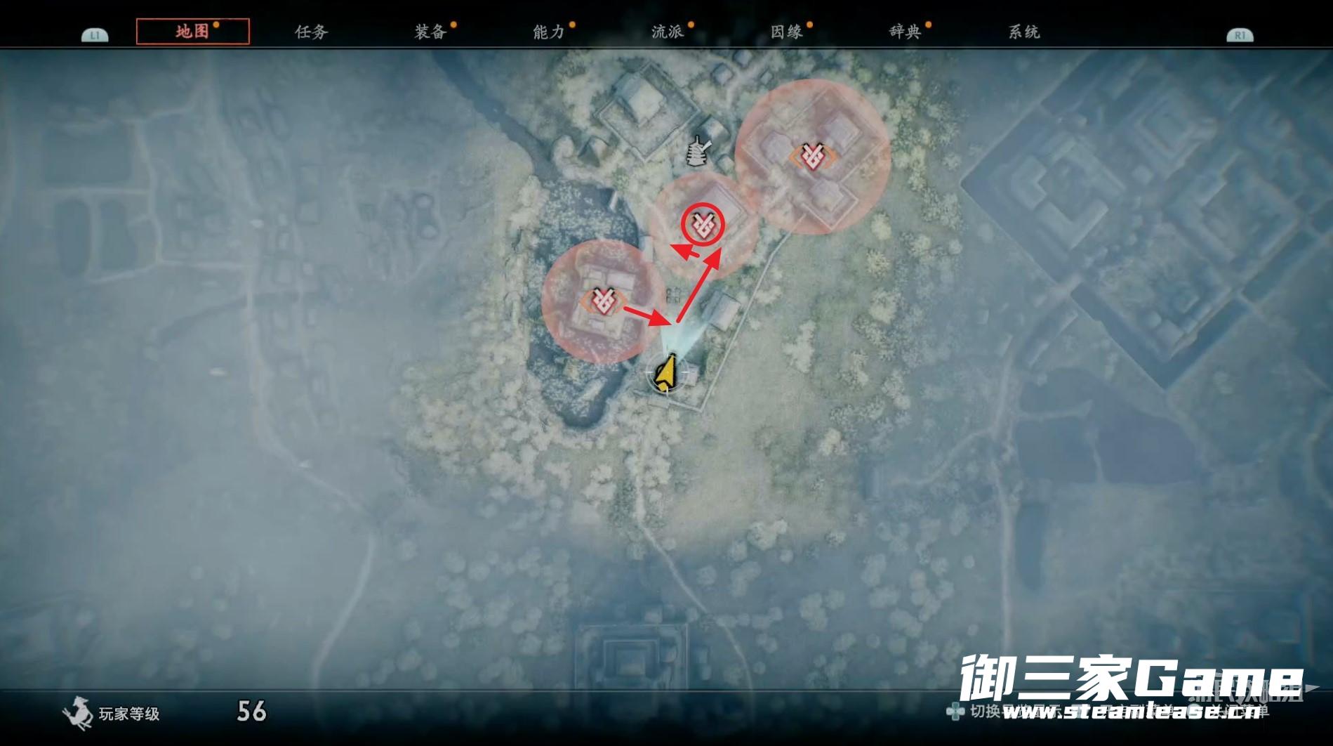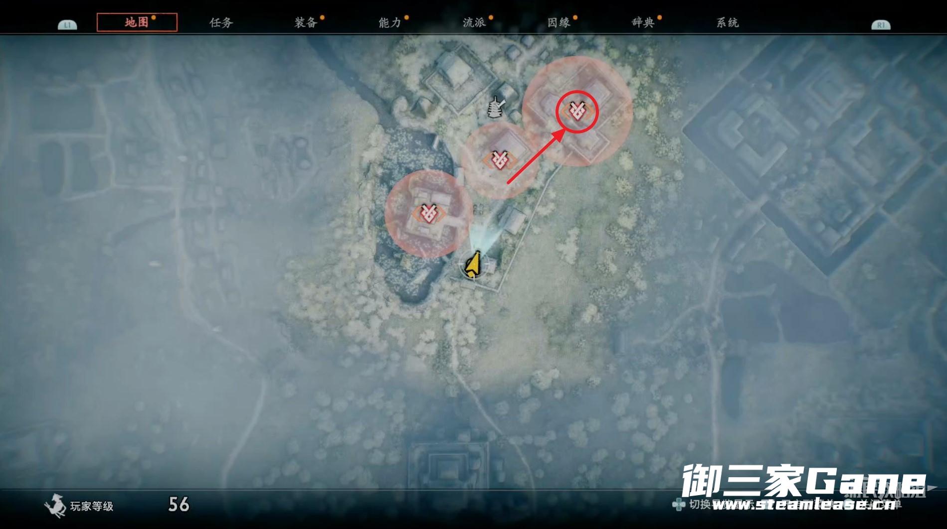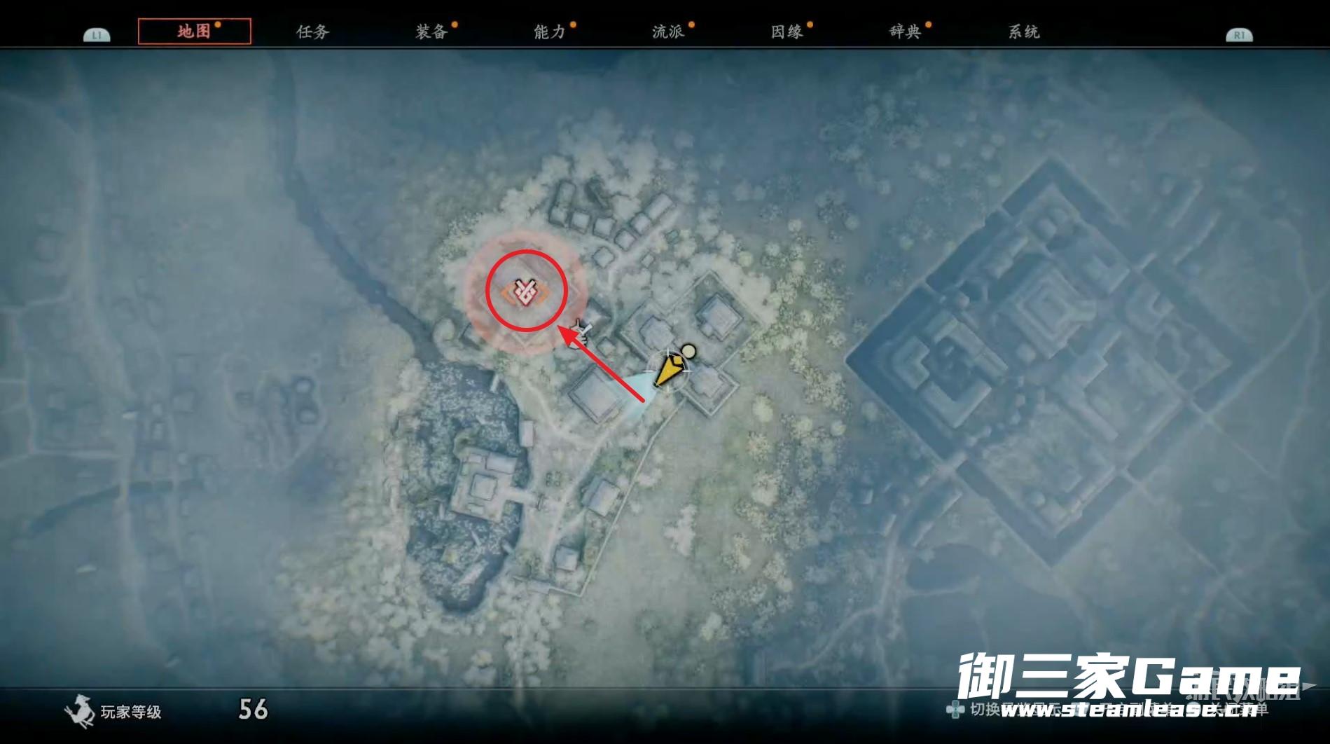 随后查看地图确认刚出现的目标地点,按照下图路线走。