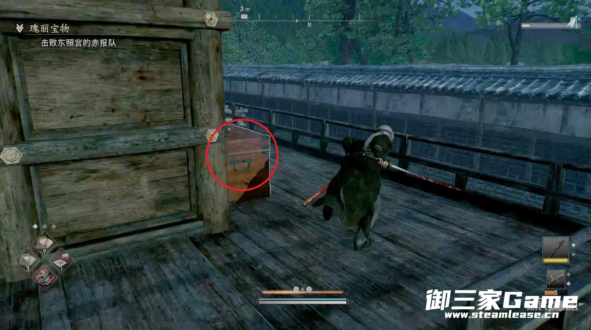 在房子的侧后方可以开启一个宝箱。