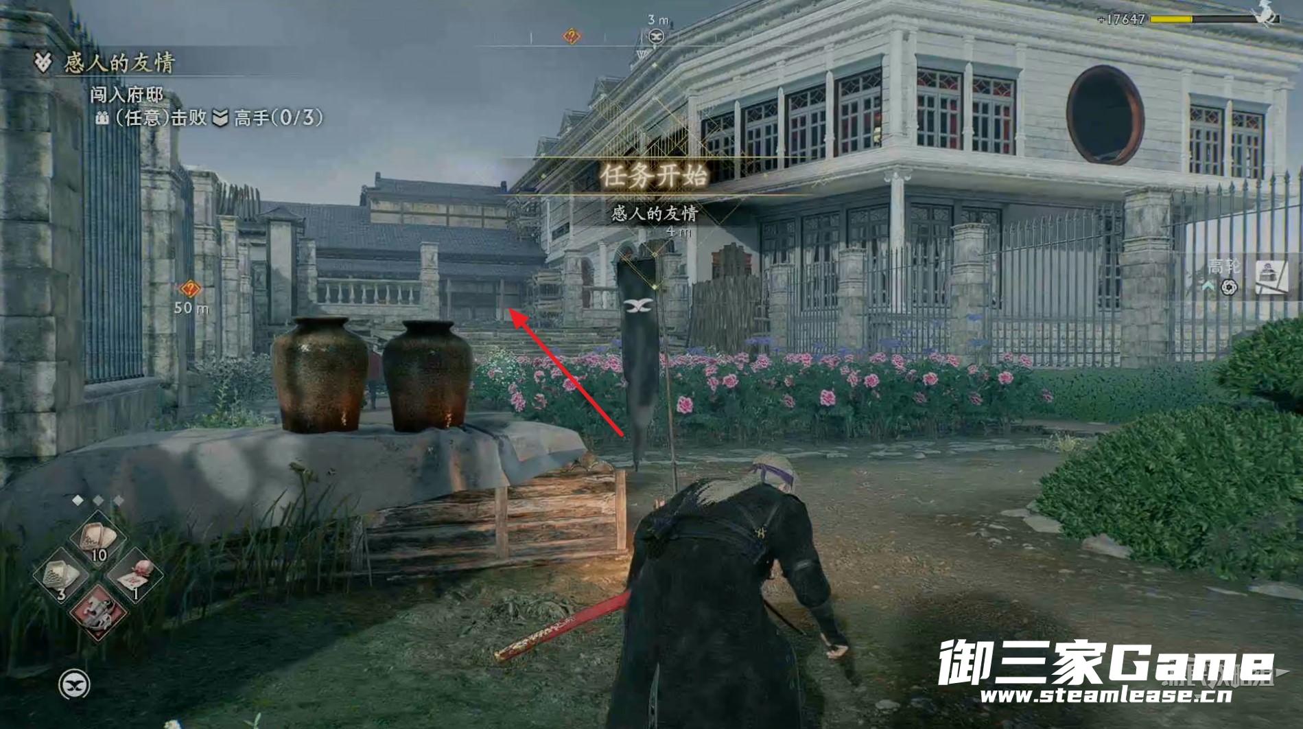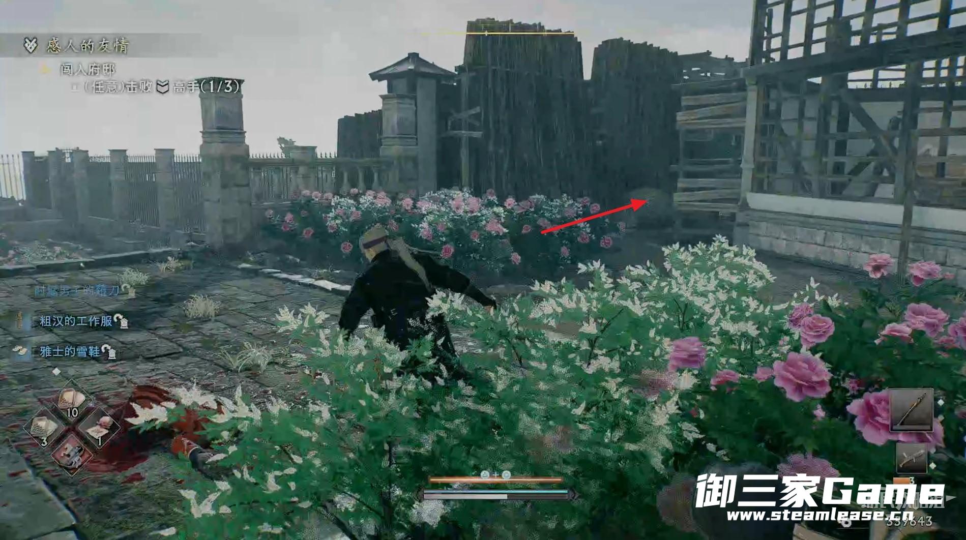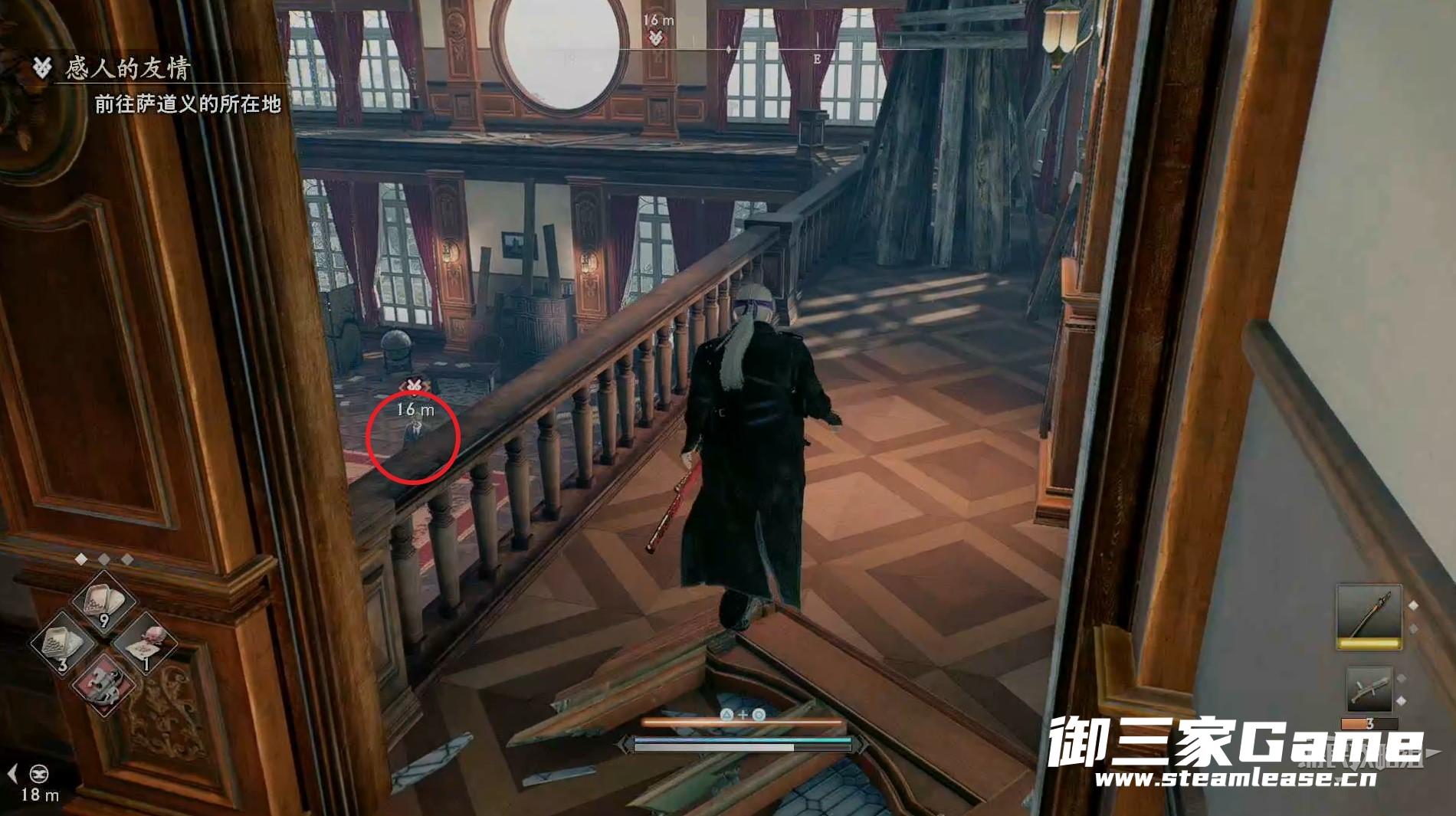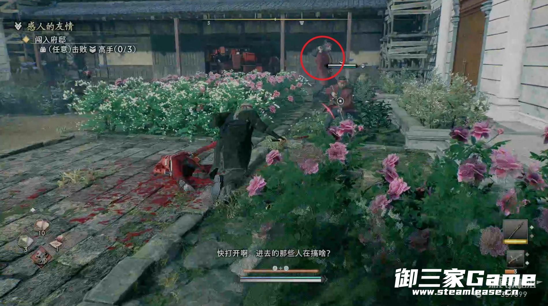 先走到敌人后面将其暗杀掉,注意敌人的身后有一个陷阱。