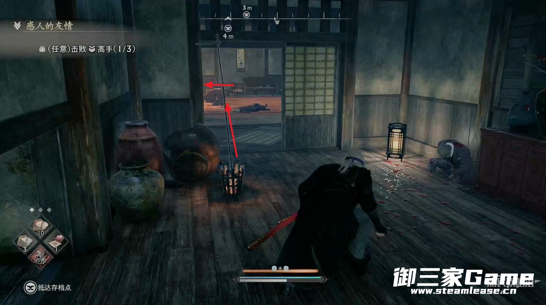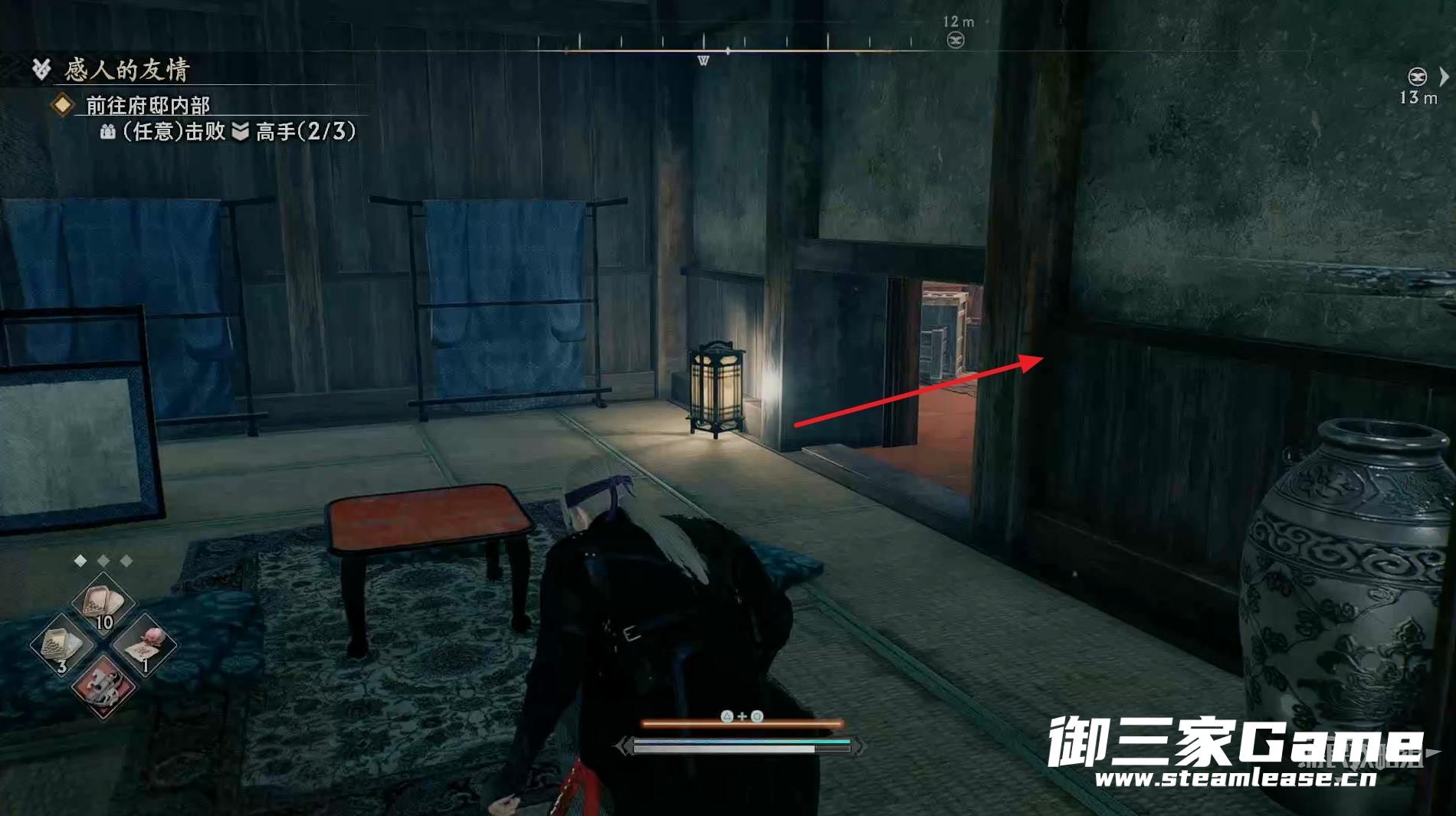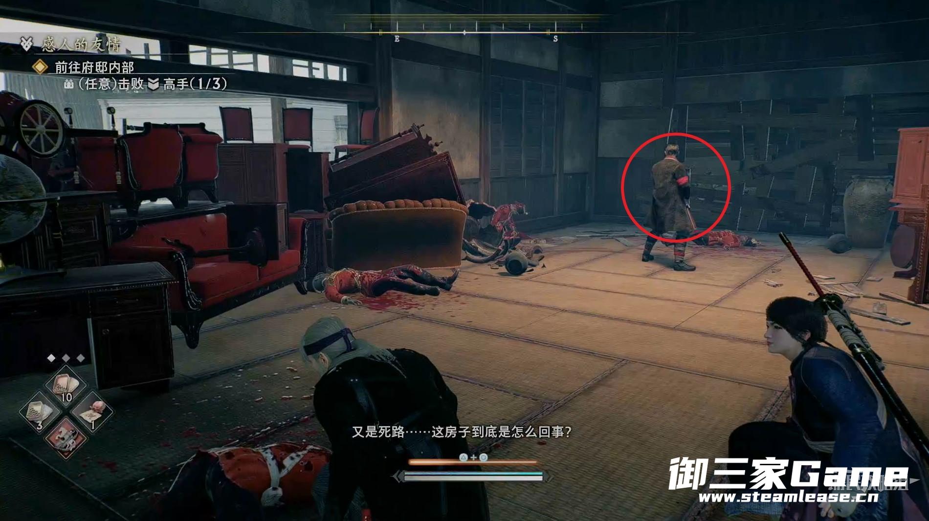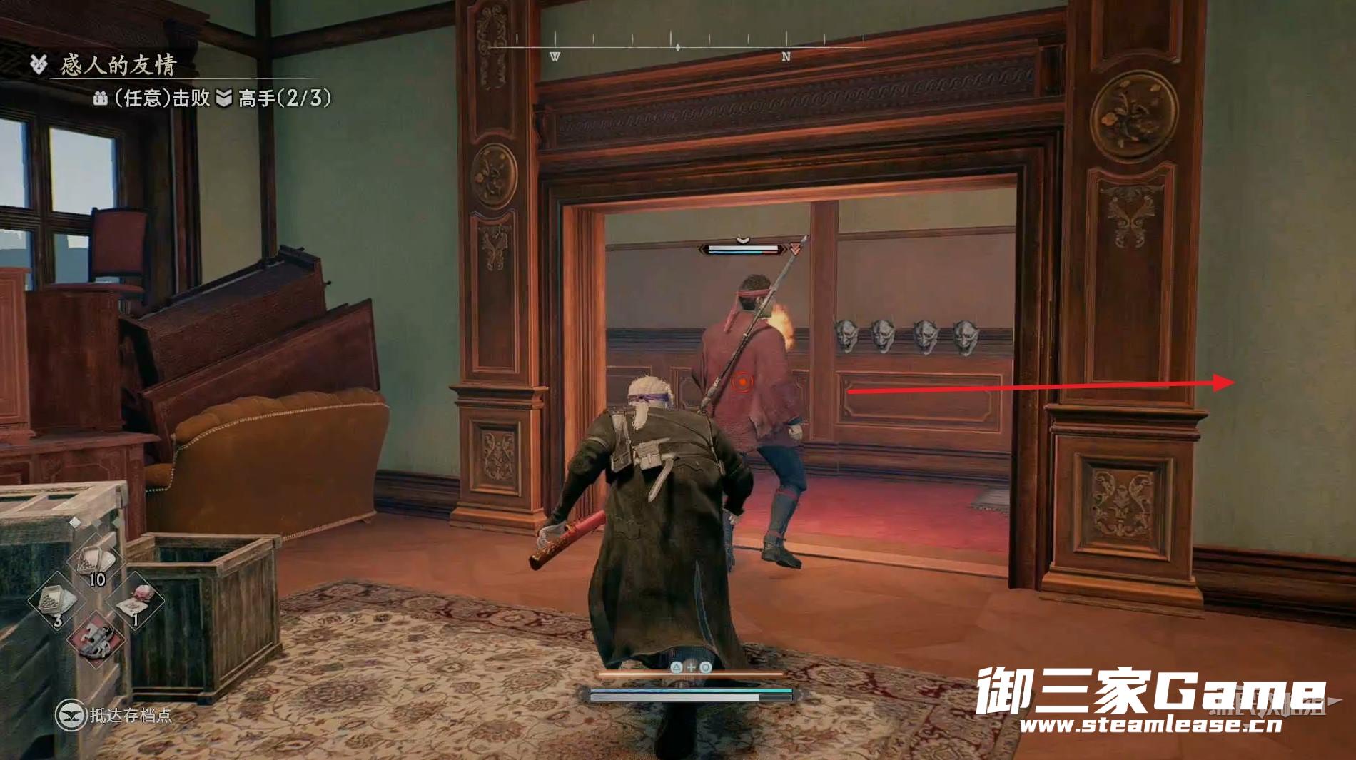 新房间的右侧有一个高手需要击败,随后往左走。
