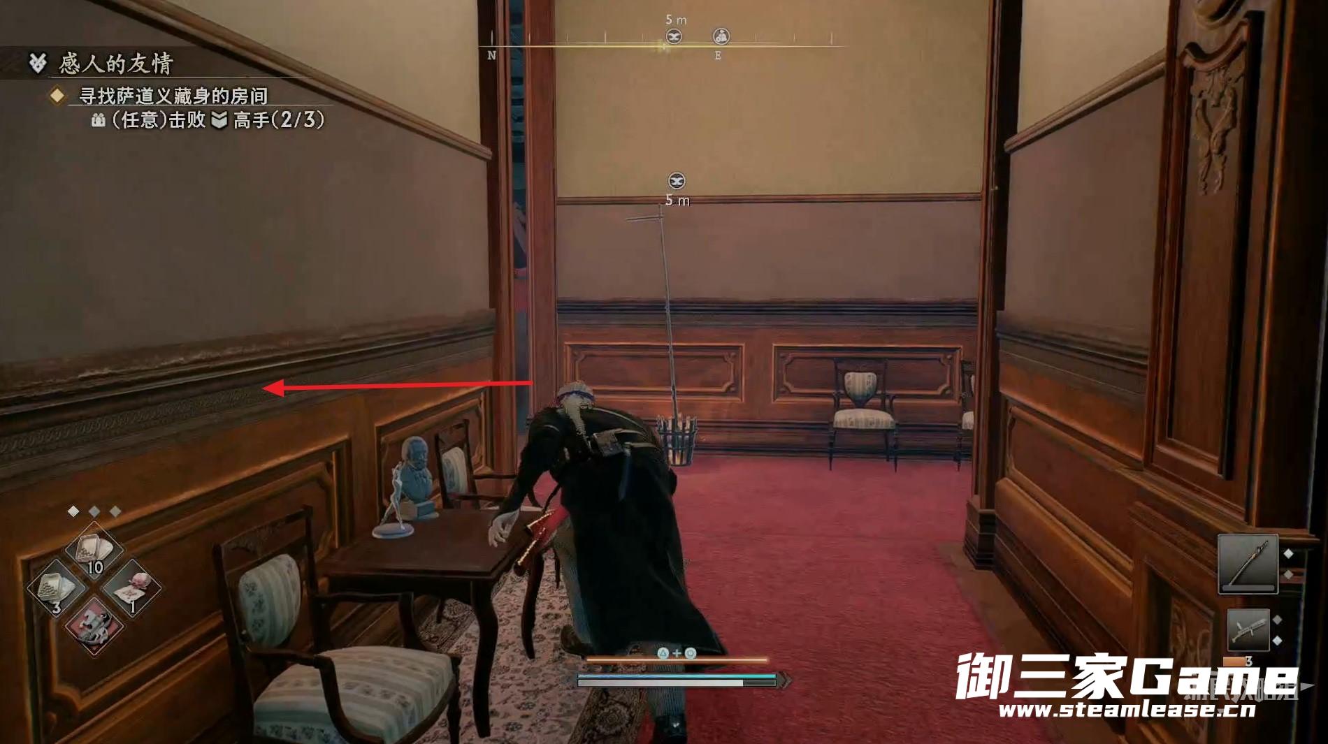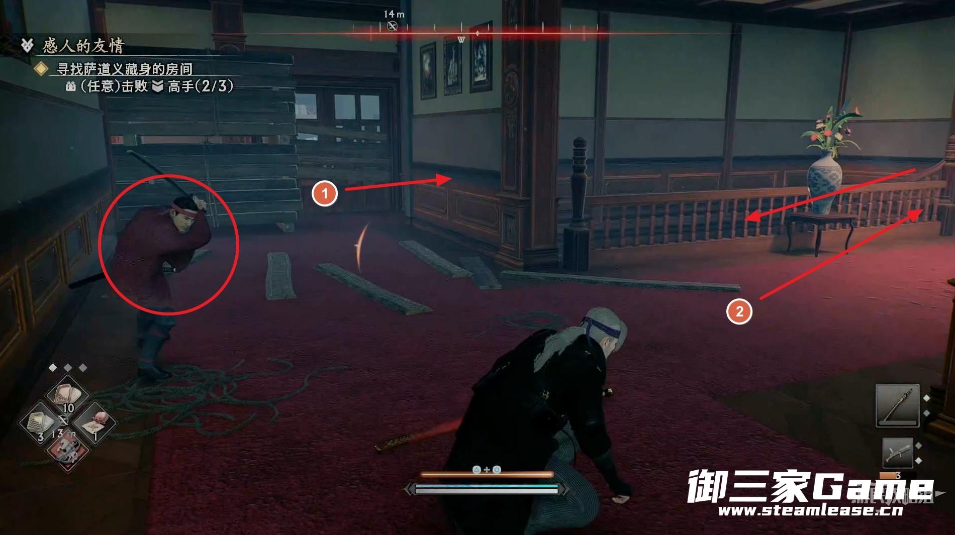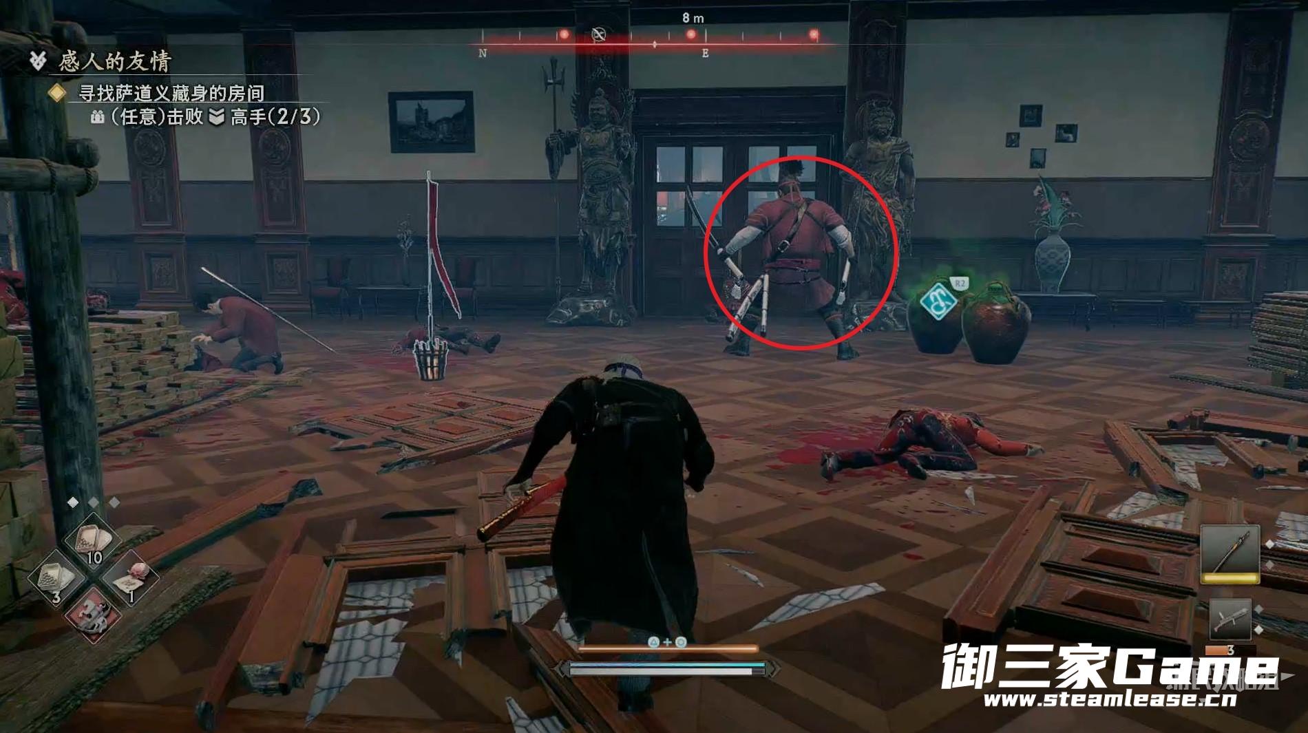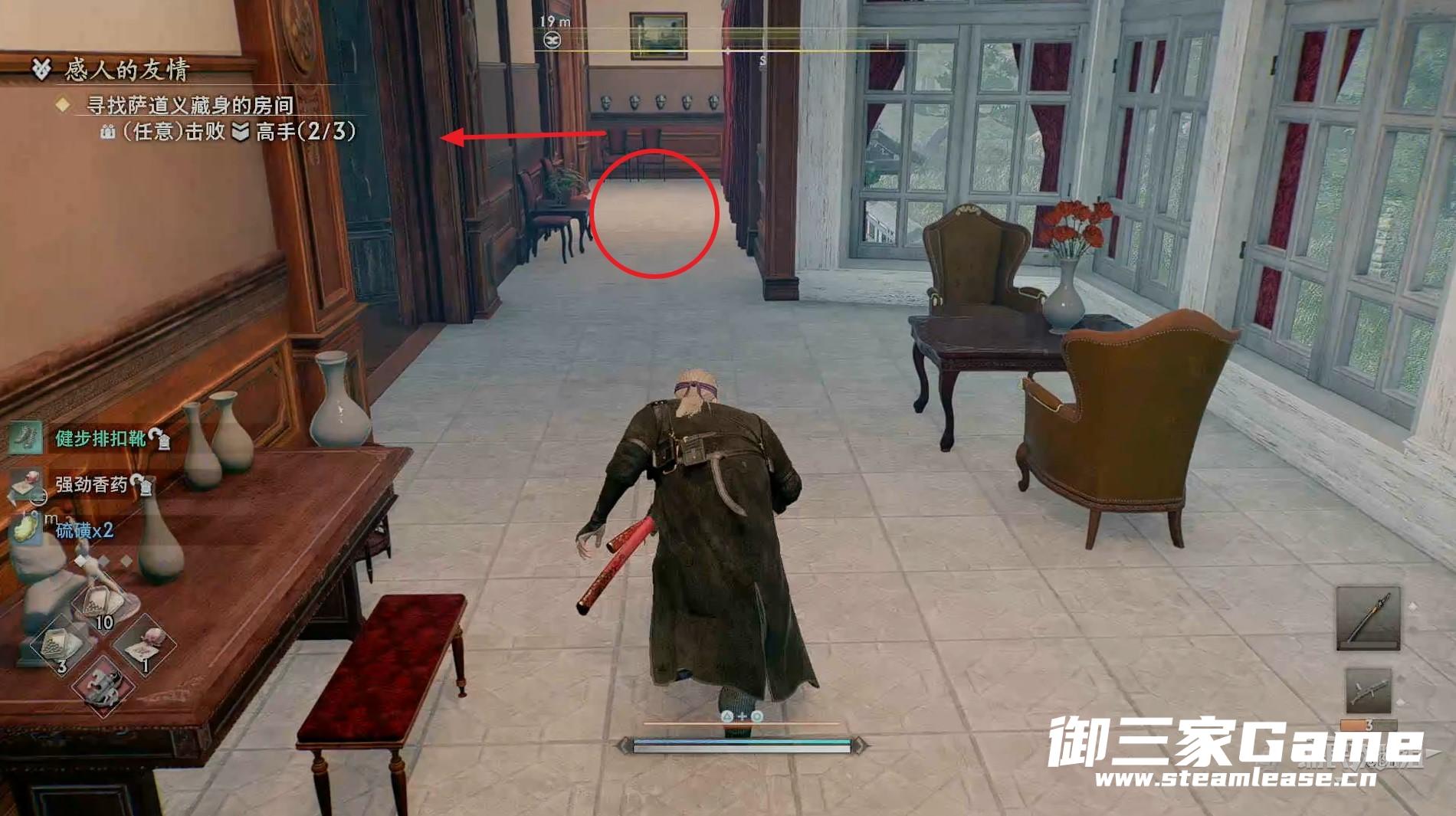 新房间的右侧有一个高手需要击败,随后往左走。