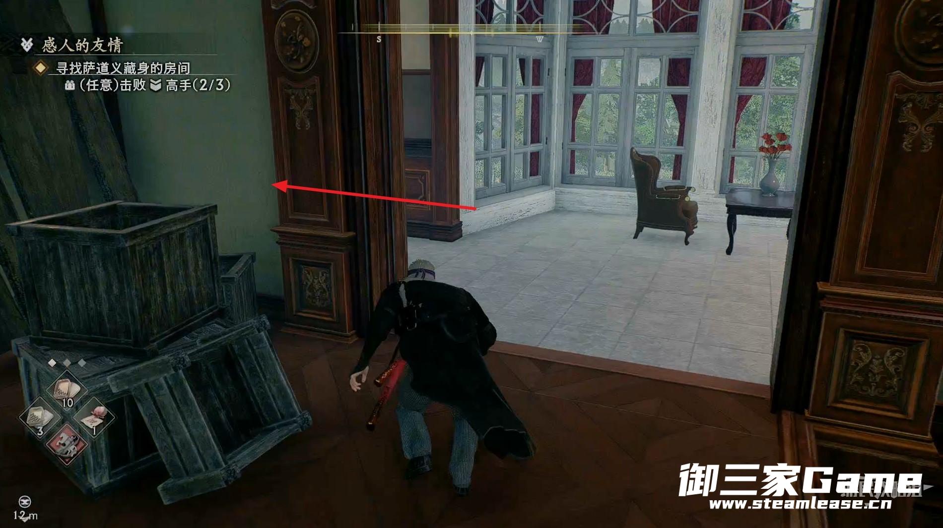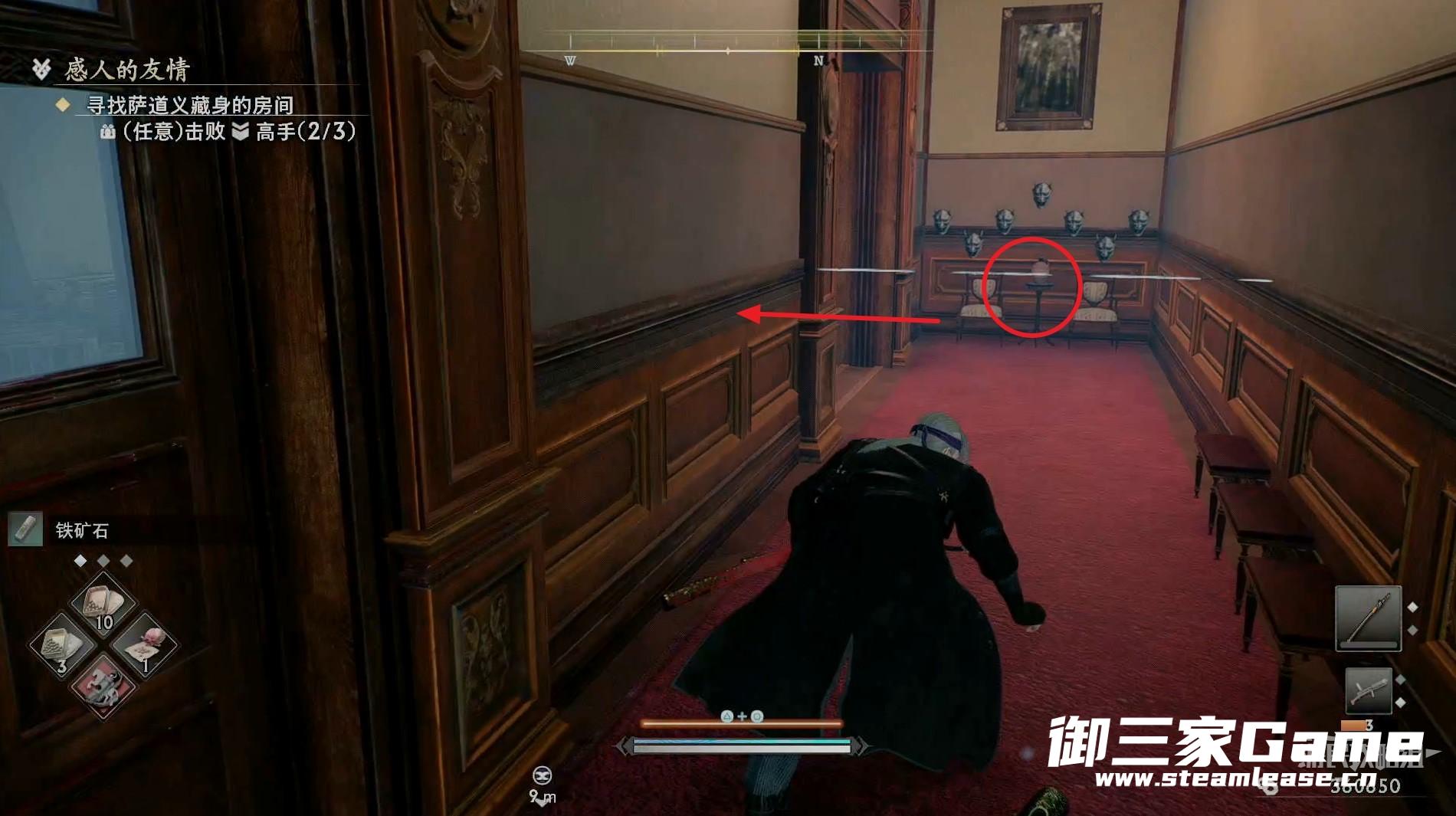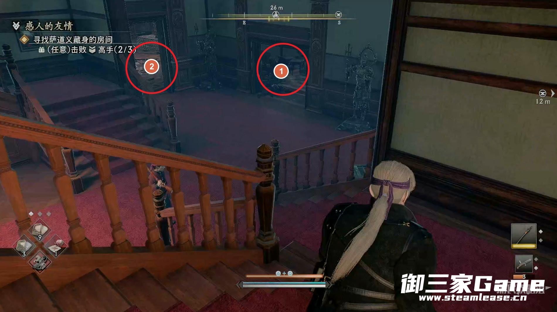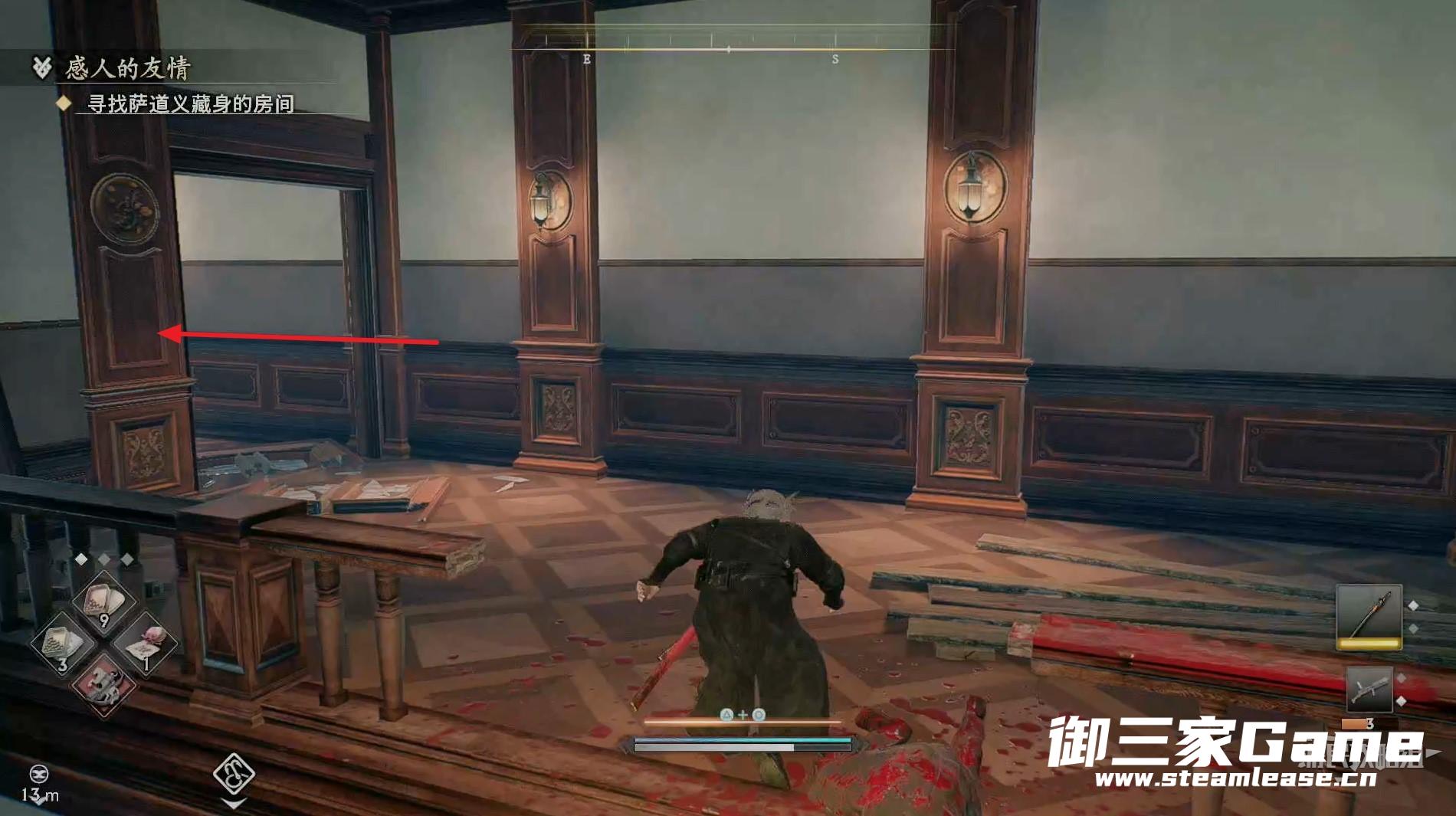 新房间的右侧有一个高手需要击败,随后往左走。