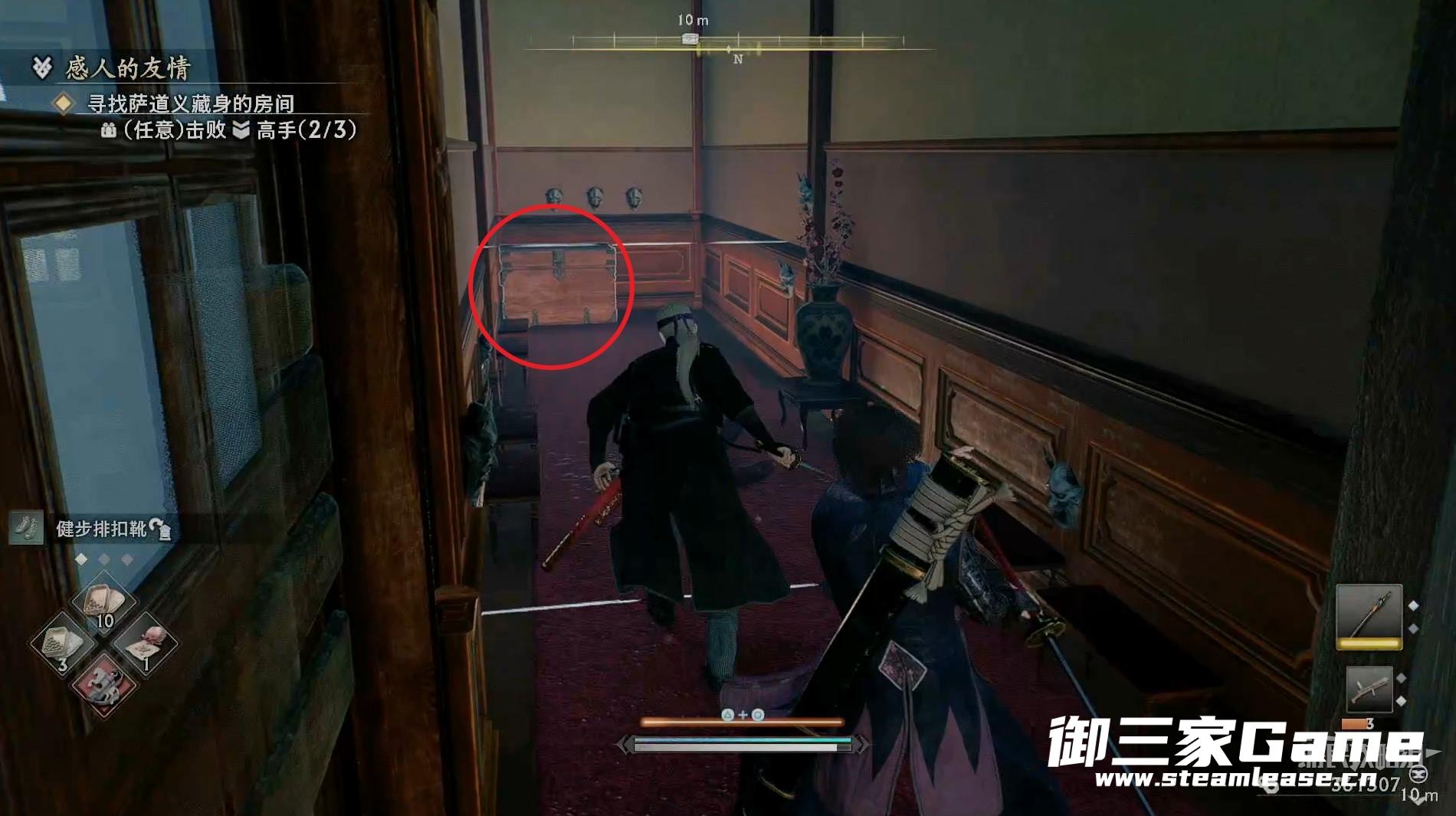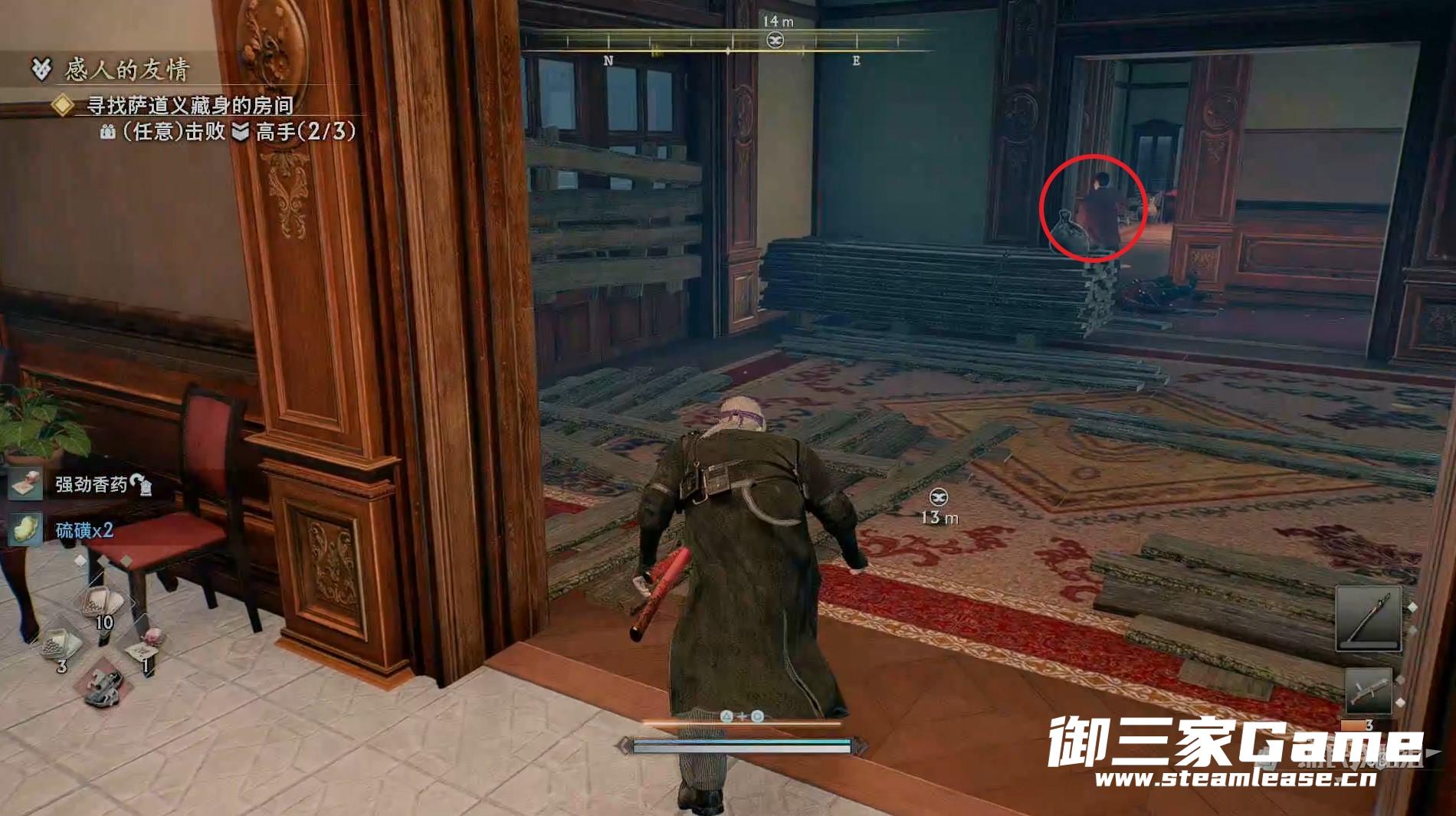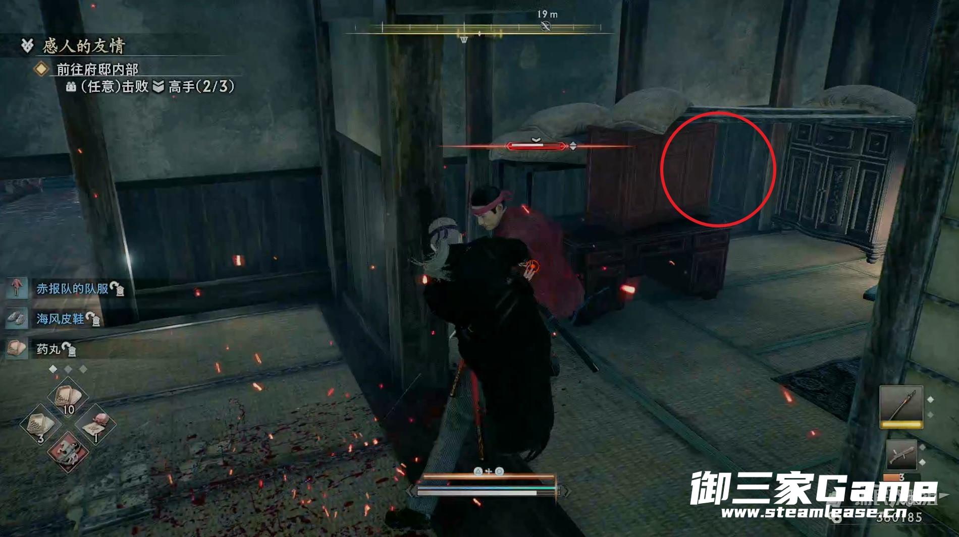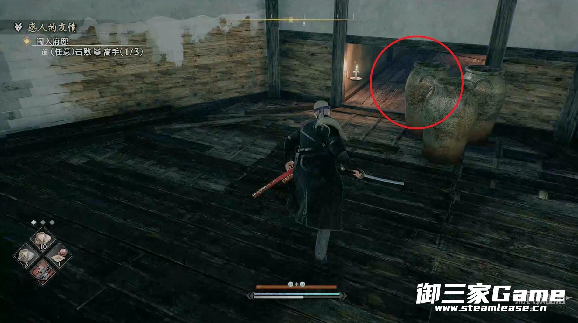 新房间的右侧有一个高手需要击败,随后往左走。