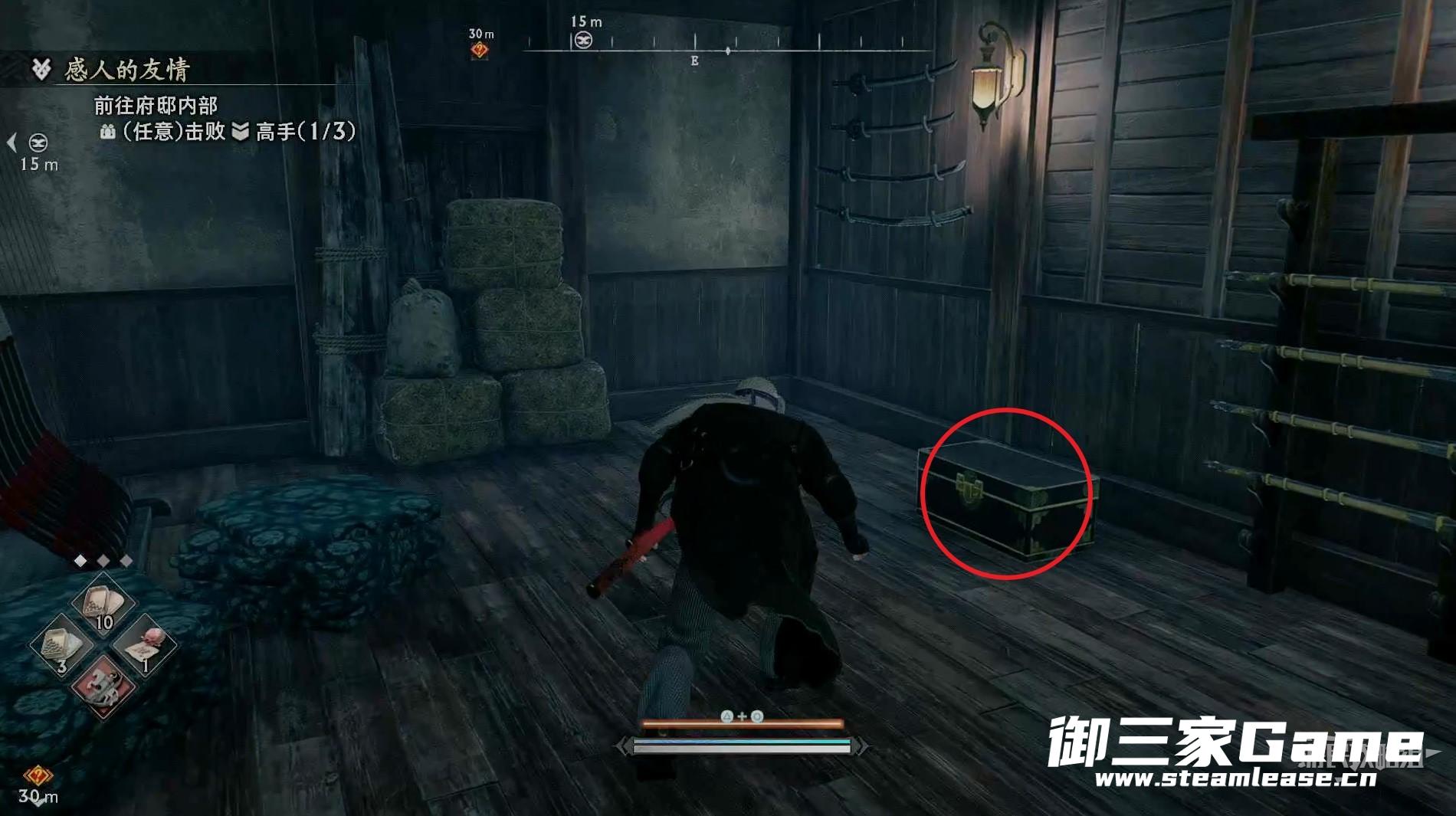 接着往敌人出现的方向看,右侧小通道有一个箱子可以打开。注意走廊的拌线。