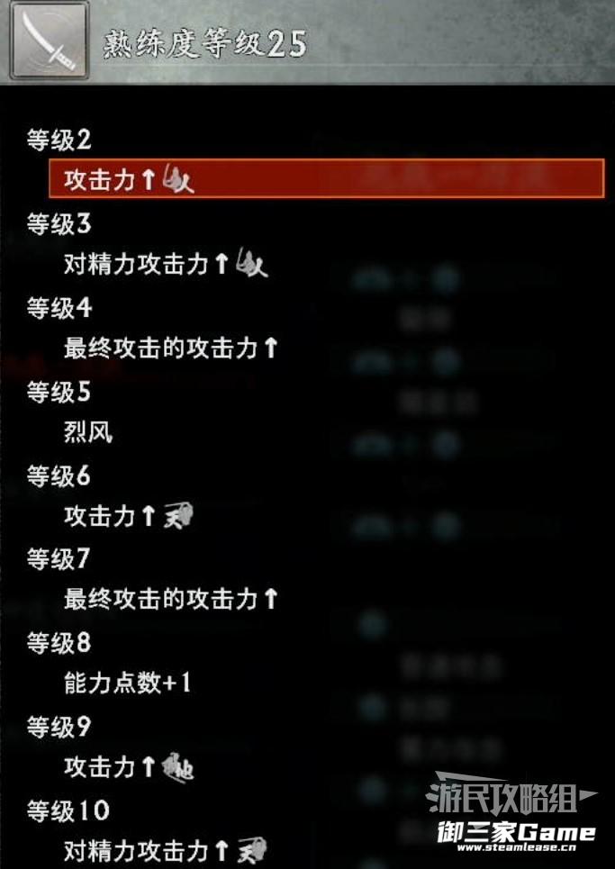 熟练度等级会提升此类型武器的攻击力数值,并解锁特殊攻击。
