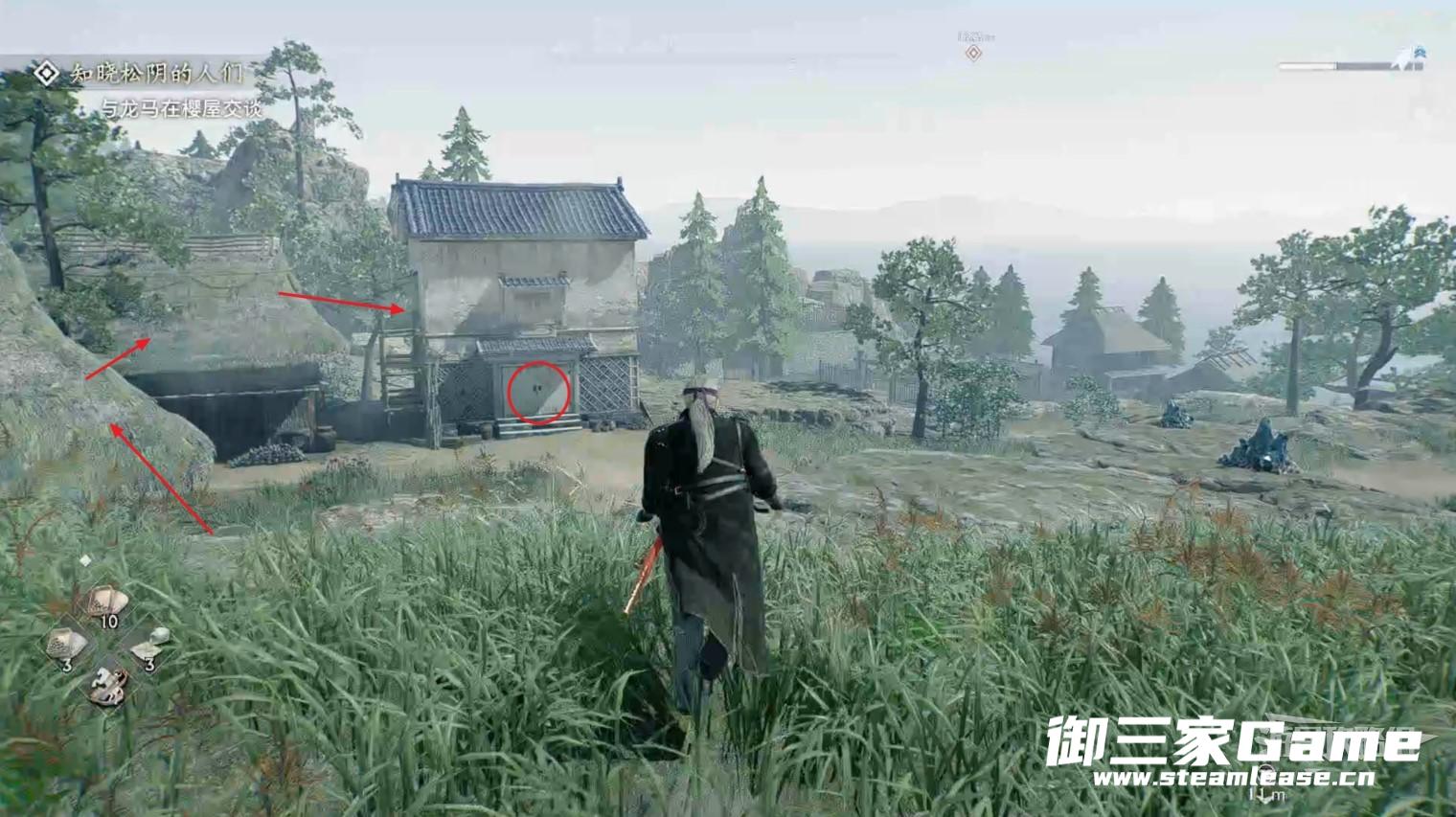 这时就只能通过2楼的侧门进入,可以通过攀爬到房顶再使用滑翔装置飞过去的方式实现。