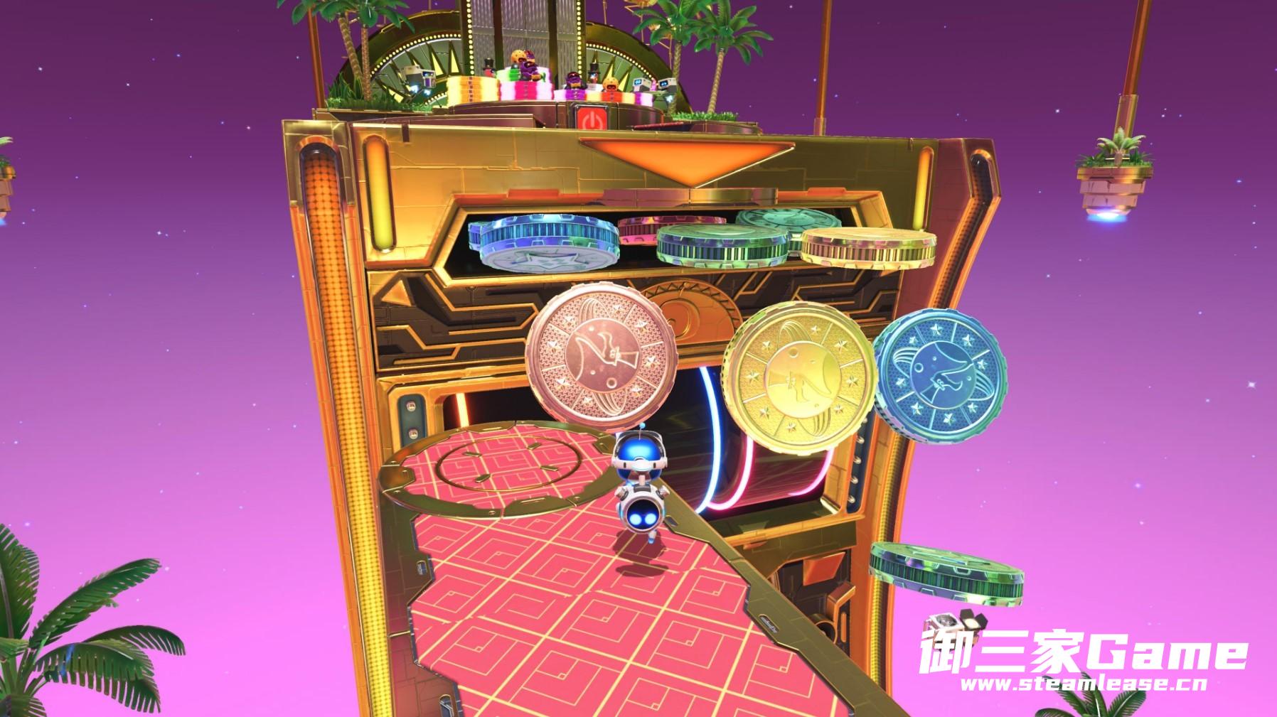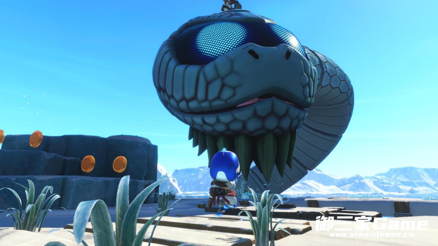 更多给人沉浸感的是体感玩法——《宇宙机器人》把基于陀螺仪的体感玩法应用到了极致:这一部分体现在当你进入每个关卡时的飞行阶段,如果你按各个按键会发现毫无反应,但这并不是意味着这个阶段是无法操控的,如果你倾斜DS5,这时“飞机”也会做出对应的转向,如果想要白金,一些收集要素同样包含在这个环节(也有包含在看起来只是走个过场的撤离环节)。