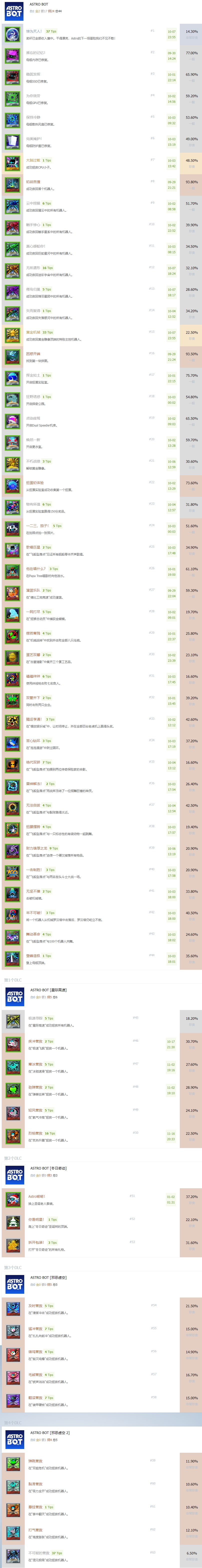 《宇宙机器人》共有44个奖杯,其中包含24个铜杯,17个银杯,2个金杯和1个白金奖杯。下面为大家带来《宇宙机器人》中文奖杯列表一览,希望对大家有用。