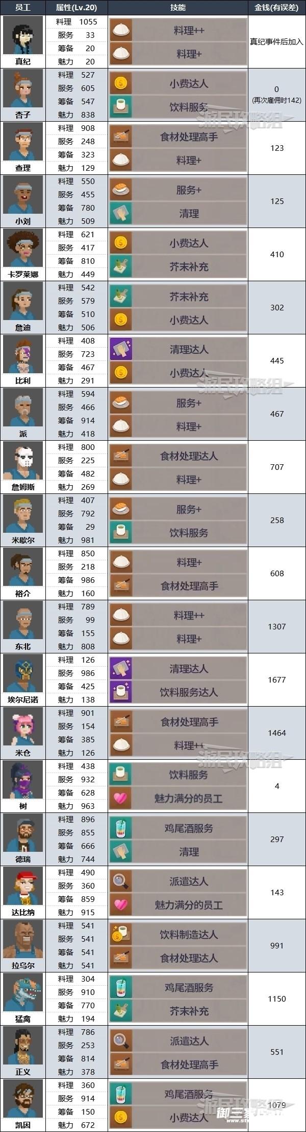 《潜水员戴夫》中玩家可以在寿司店雇佣各种员工,员工都各自独特的技能和属性,可以为寿司店提供额外的加成。下面就为大家带来《潜水员戴夫》全员工技能及属性效果一览,希望对大家有所帮助。