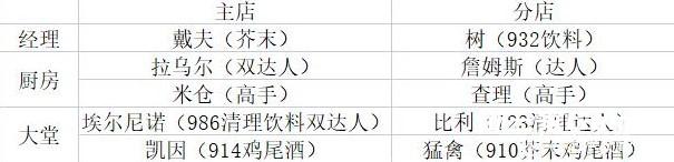 总结来说,经理要求1.料理≥500,2.服务尽量高,3.要么带鸡尾酒技能,要么尽量少带技能4.因为分店清理可能来不及,经理要尽可能帮忙清理