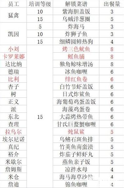《潜水员戴夫》中玩家们的员工可以通过升级解锁菜谱,想要知道各个员工菜谱的玩家请看下面“dressed_up”带来的《潜水员戴夫》员工等级解锁菜谱一览,希望能够帮助大家。