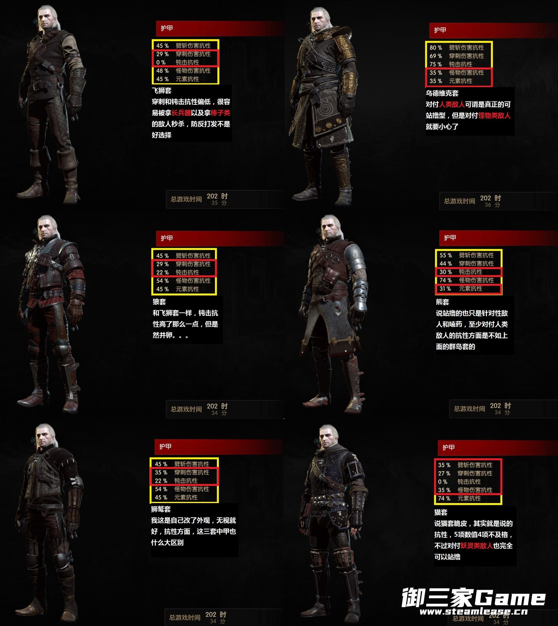 但是有的防具不单单只有抗性,还有别的属性加成,比如飞狮的毒性上限,狮鹫的法印加成,猫套的攻击加成等等,玩法不一样,选择也不一样,抗性表只能是提醒你对什么怪物要采用什么样的打法更稳妥。