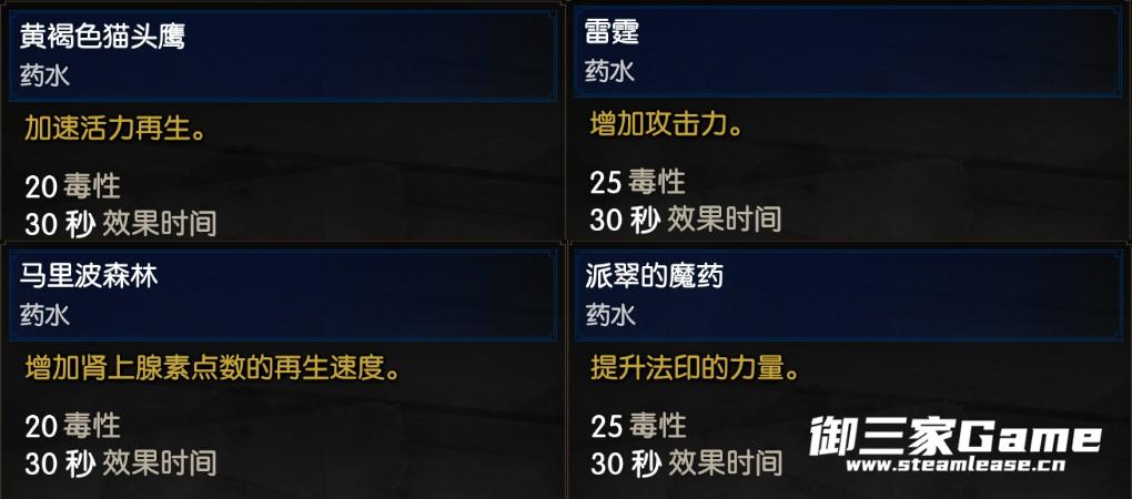 白色拉法达是前期保命神药,黑血打到陶森特才能发挥真正的效果,吃燕子的时候最好不要战斗。
