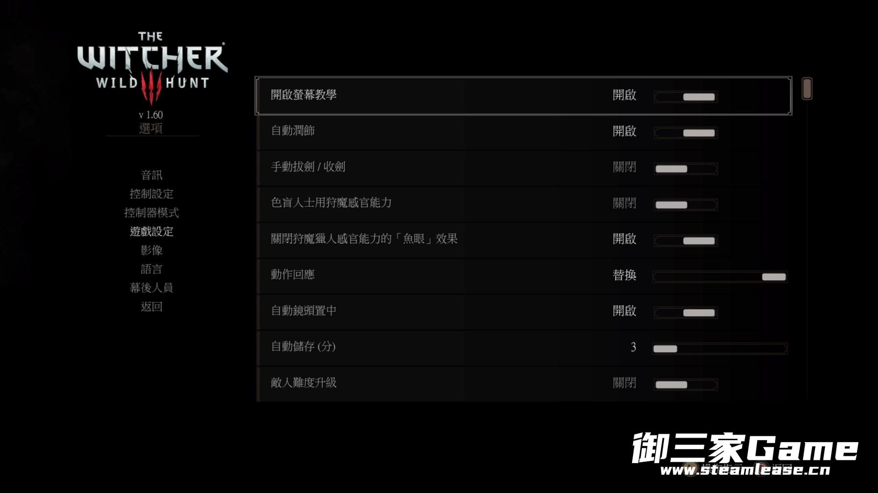 1、关闭狩魔猎人感官能力的“鱼眼”效果:开启设置为关闭效果,默认开启猎魔人感官时模拟鱼眼的广角视觉,根据个人习惯决定是否关闭。