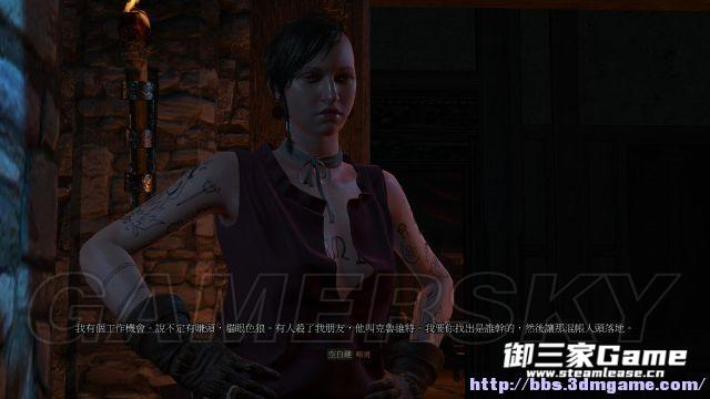 step2.走出加林庄园大厅,有一个莫西干头的女人叫停杰洛特,她一直以猫眼色鬼来称呼杰洛特,她委托一个支线任务给杰洛特,是要杀死一名叫作克鲁维特的人,因为此人杀害了她的好友,她还表示杰洛特必然会接受这个任务。
