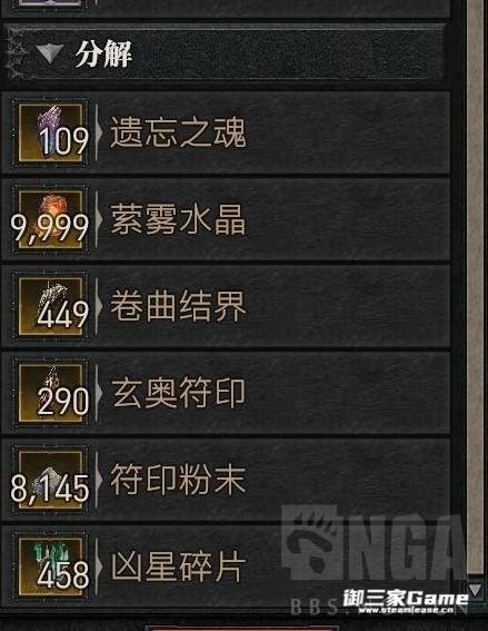 3.新玩家过剧情过程中注意一下400装等这个节点,超过400的黄装再附上威能就需要分解传奇给的材料了。
