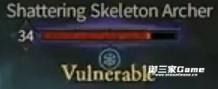如果怪物被易伤了,它的血条会变成紫色。如果玩家被怪物攻击触发了易伤,血球UI上会出现紫色裂纹。