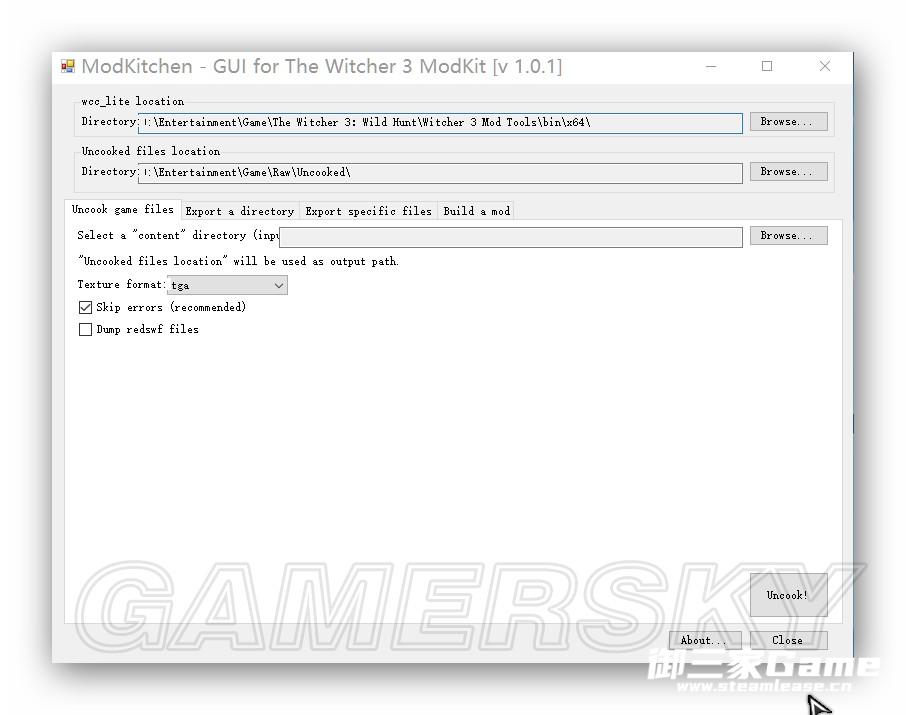 打开ModKitchen,将由上往下第一个Directory设置为ModKit的安装路径\bin\x64\,如图。