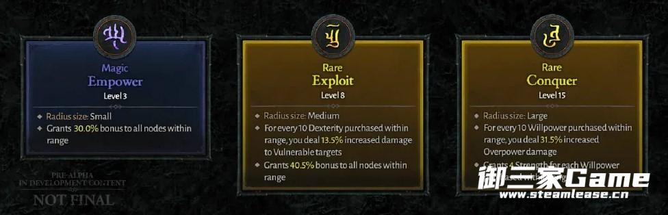稀有面板栏位能够大幅强化角色强度。在首次解锁颠峰面板时,这种类型的面板栏位会是玩家追求的重大目标,尤其是在玩家锁定某种流派发展的时候更是如此。在英雄角色的人物属性提高至一定等级之后,这些稀有面板栏位还可以提供额外的能力,因此玩家在选择面板发展路线的时候需要思考并做出选择。