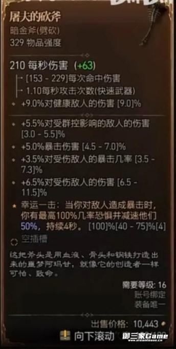 3、词缀完全固定,不同的暗金武器只有数值的区间不同,但词缀的类型是固定的。