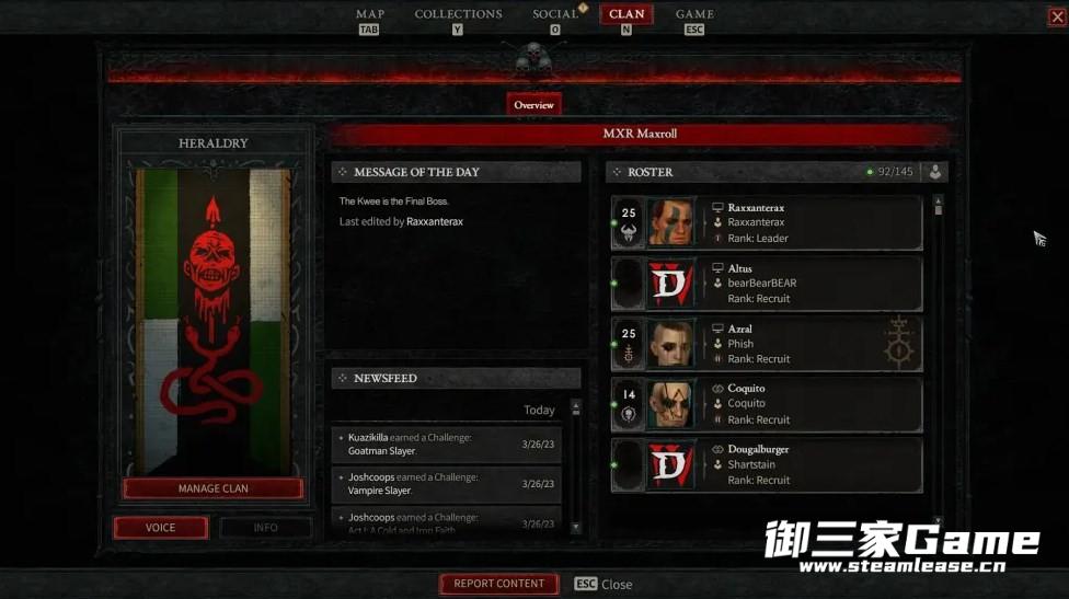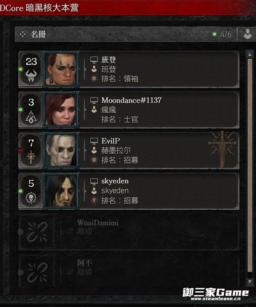 创建后可以进入社群的登陆页面。 社群最多可以有 150 名成员,并且同一帐户中的所有角色(包括硬核模式)都属于同个社群。