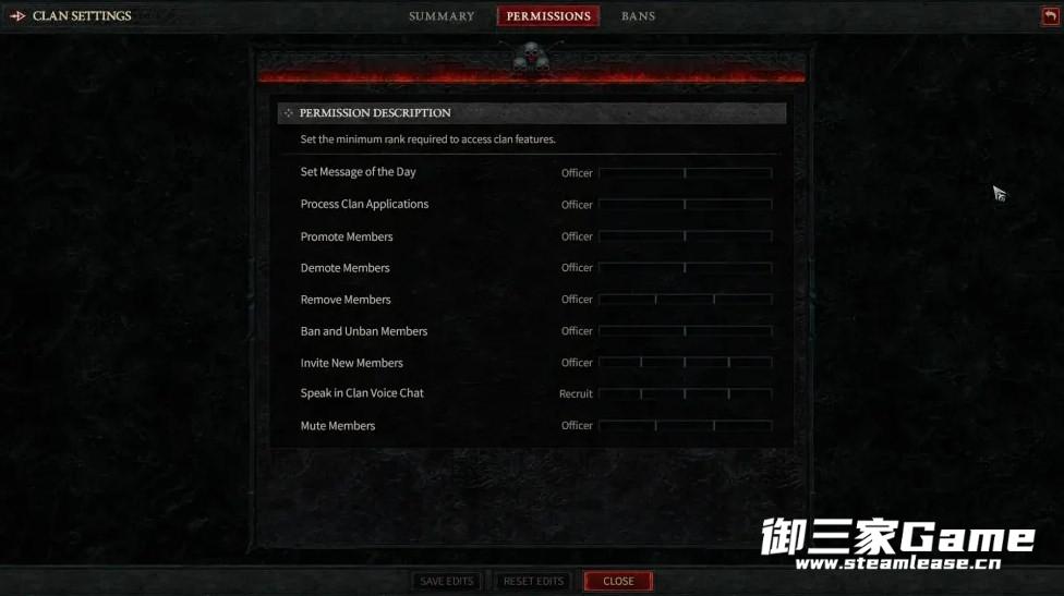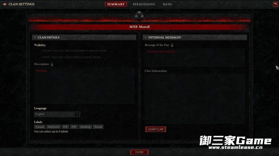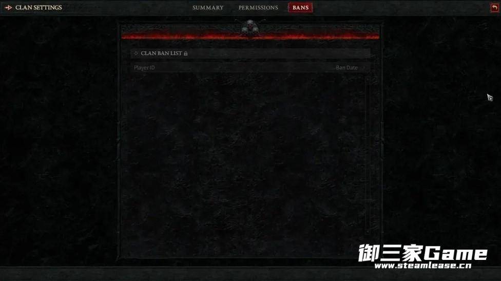 这里显示被社群封禁的玩家列表,列表可按玩家的战网 ID 和封禁日期排序。解散氏族的按钮同样在这个页面。