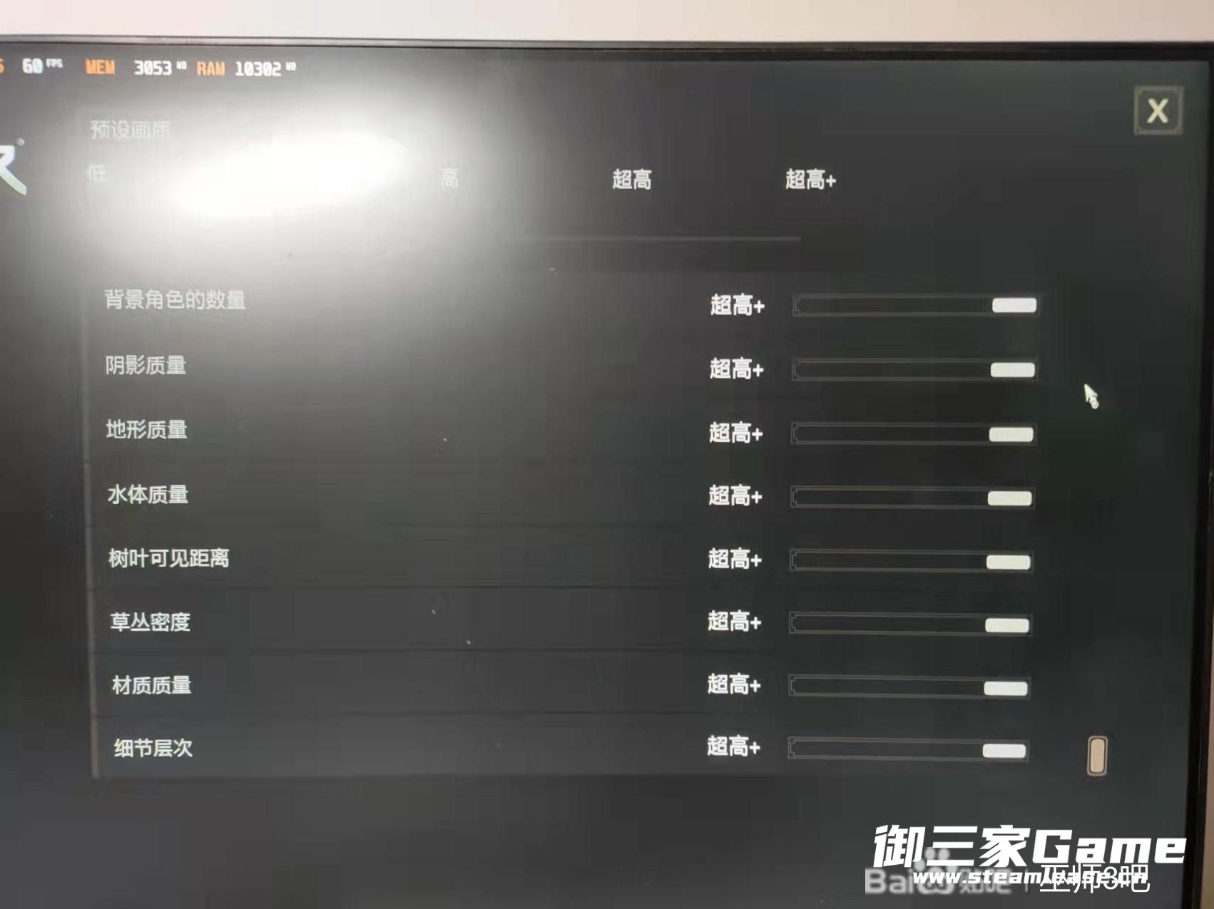 如果主城不掉帧,进入大片树林容易掉帧的的话建议把阴影质量调低其他不用动,然后基本没啥问题了。
