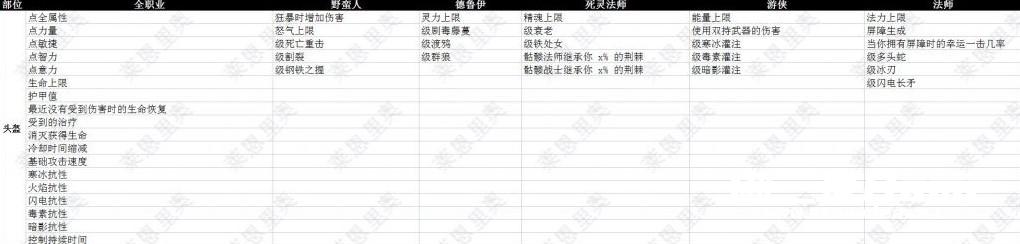| 全职业 | 野蛮人 | 德鲁伊 | 死灵法师 | 游侠 | 法师 |