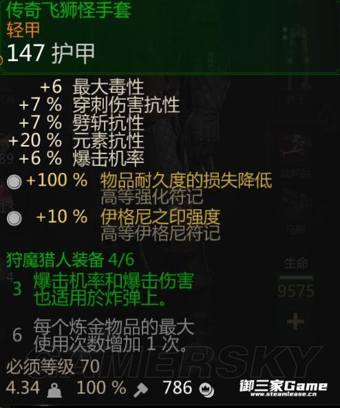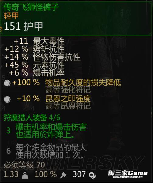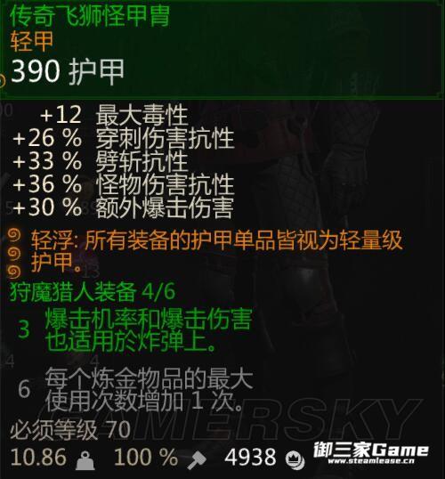 传奇飞狮套装。也就是匠师飞狮套。选这一套的原因是加了毒性上限。可以多嗑一个煎药。而且装备加爆率和爆伤