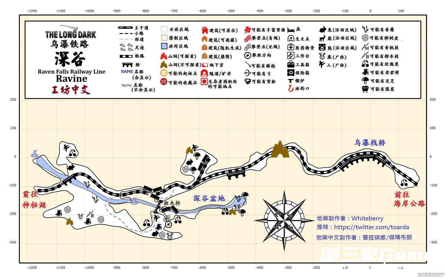 《漫漫长夜》游戏中想要顺利生存的话,了解地图分布情况是必不可少的环节,今天小编带来“傑瑞布朗”分享的《漫漫长夜》中文全标注地图,废话不多说,下面我们一起来看吧。