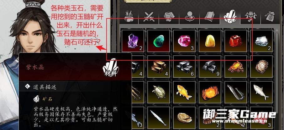 有些玩家在锻造时会发现有一些玉石类材料不知道从哪里获得,虽然道具说明里解释了这些玉石类材料"可由玉髓矿切出",但打开背包,选择【材料】分类标签,却怎么也找不到玉髓矿这个东西,明明在挖矿的时候挖过很多玉髓矿,但就是找不到(例如我……)。