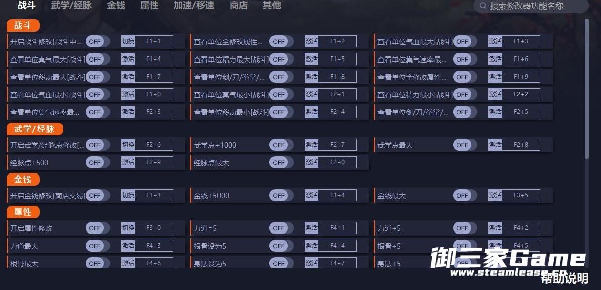 3.开启修改器各主初始项再使用各子修改项[无主初始项则不用开启][主初始项:如开启...修改]。