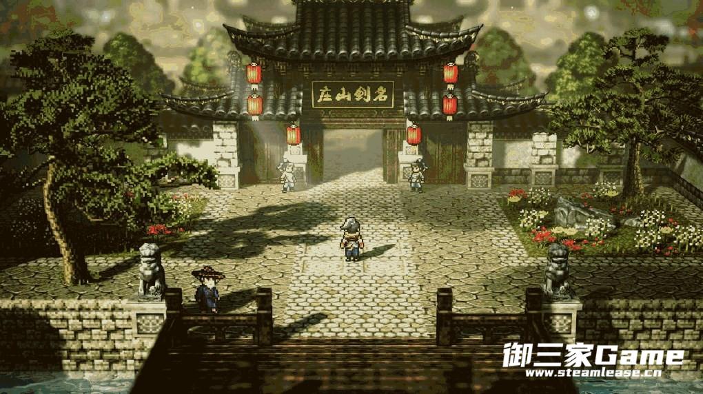 最后,我们来到的是名剑山庄。名剑山庄孤悬海外,只有途径姑苏城通过水路方可到达。一进庄门便能看见那气势非凡的洗剑池与其后“洗心问剑”四个大字,而名剑山庄正是以其闻名——传奇的铸剑技术和同样无与伦比的剑法。在武林中,每一把声名远扬的名剑都出自名剑山庄的匠人之手,武当的清霄、清虚二位道长所持泰阿剑,即得名于山庄主堂泰阿堂。除了铸剑练剑,名剑山庄也会举办品剑大会,广邀天下高朋切磋比武,优胜者即有名剑相赠,武当头号大弟子“武当无尘剑”莫问即得剑于此。