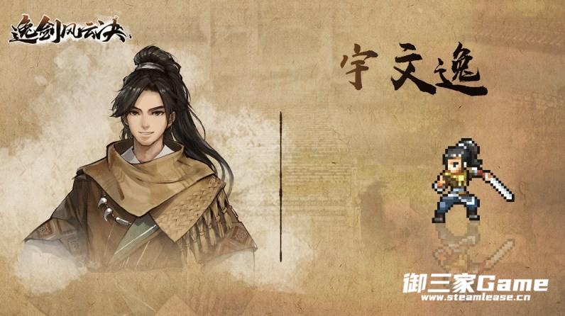 首先是主角宇文逸,他乐观、开朗、正直,来自边陲辽城。原本只是个涉世未深的平凡青年,在伯伯的介绍下刚踏上了走镖之路不久,却不巧被卷入一场门派间的暗算和斗争,不幸遭到波及。幸好武当派掌门清虚道长及时救助,成了整个队伍中的幸存者。为了帮同伴们报仇而开始努力练功踏入武林,后续却渐渐被卷入了更加复杂和浩大的江湖纷争之中。