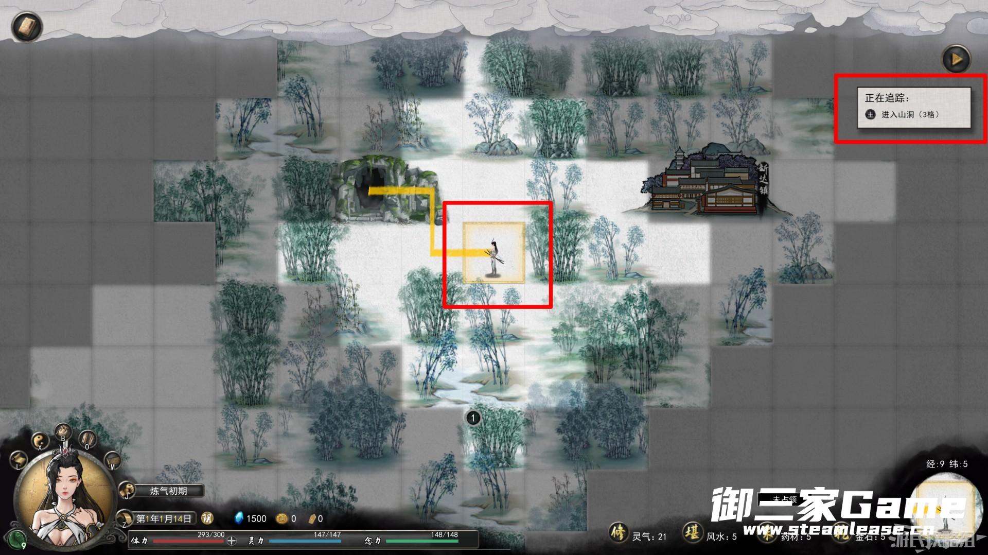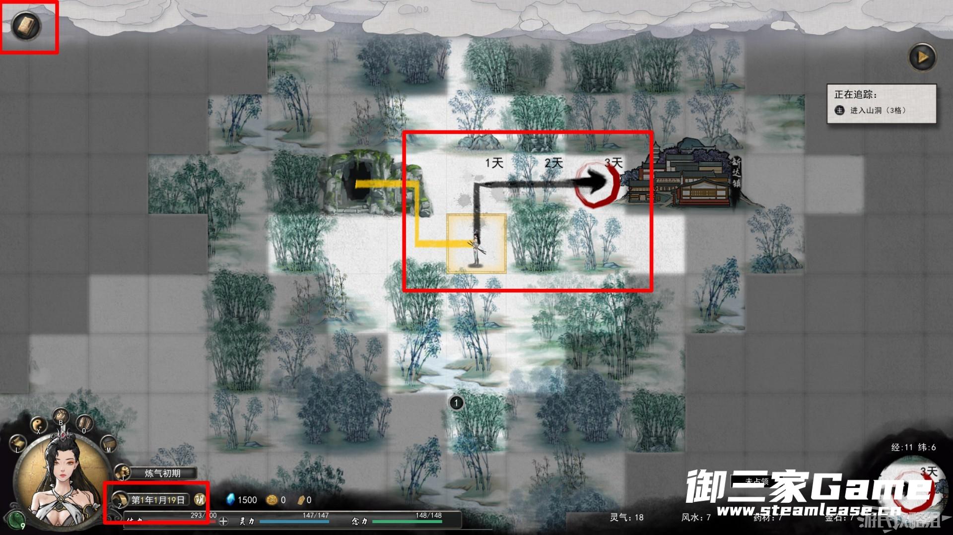 以移动为例,鼠标左键单击目的地可以查看到移动至该地需要花费的天数,再次点击目的地即可自动前往。移动速度与脚力有关,脚力越高则同样行程花费的天数越少。