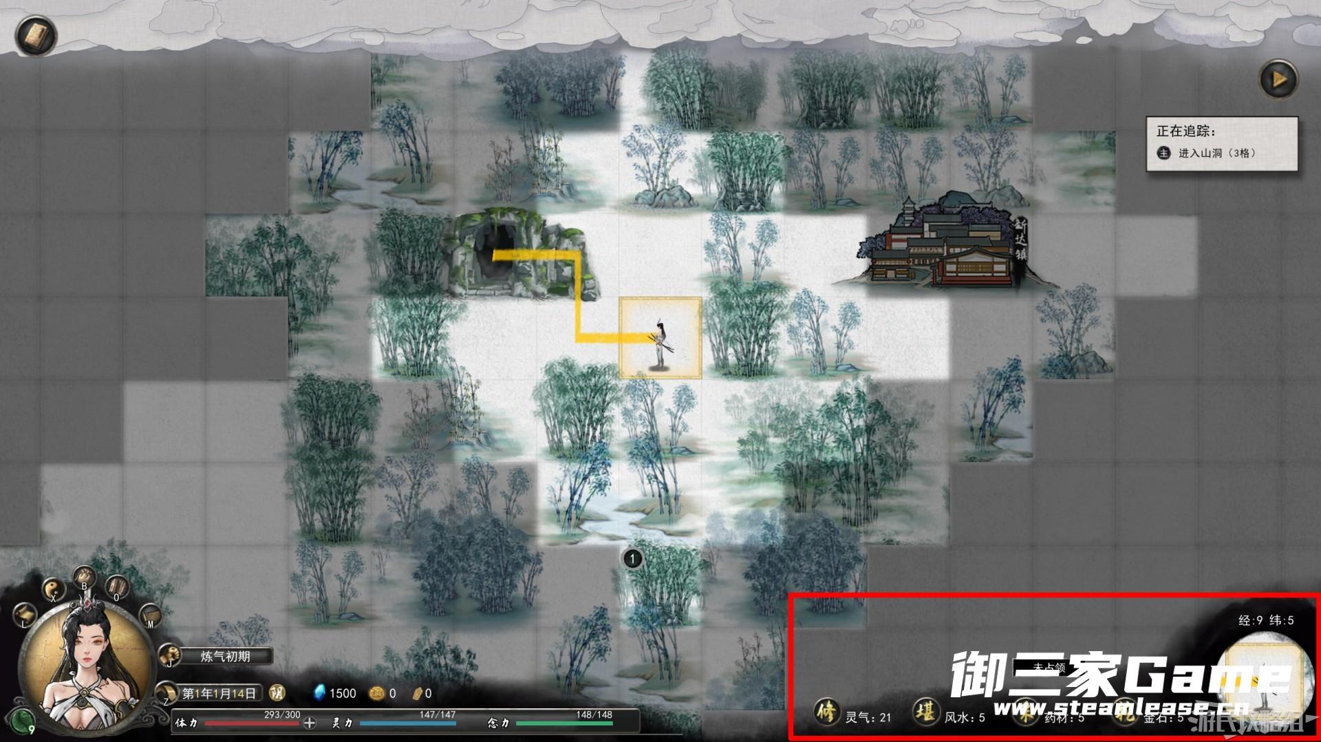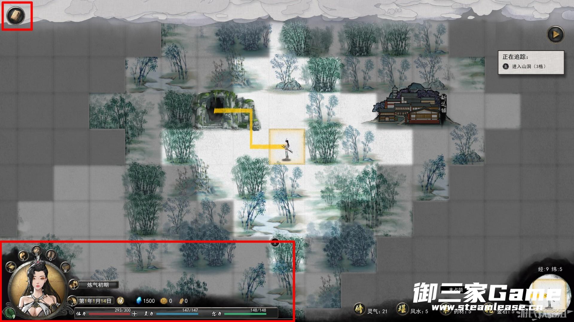 界面左下角为角色信息栏,玩家可以在此直接查看到角色当前的体力灵力和念力情况,也可以查看到当前角色拥有的灵石、声望和城主令数量。