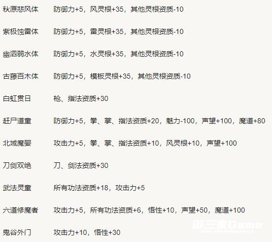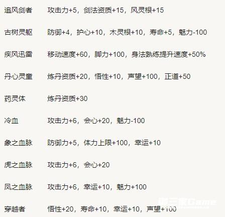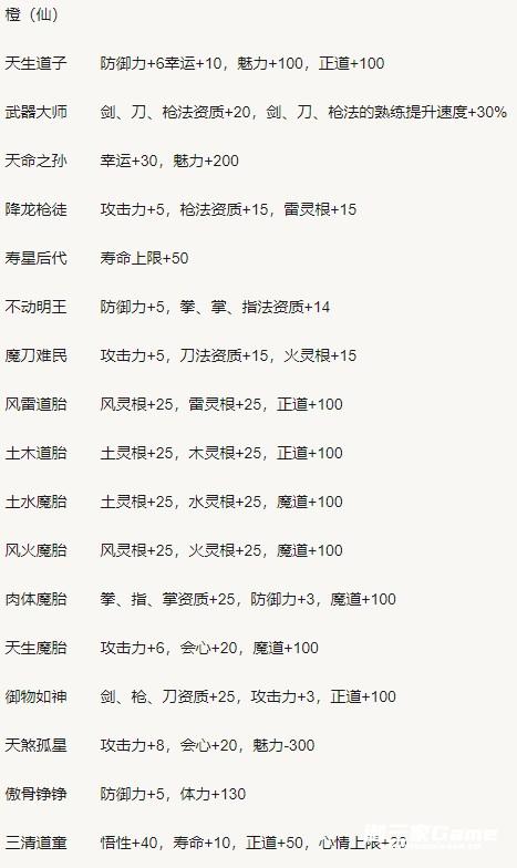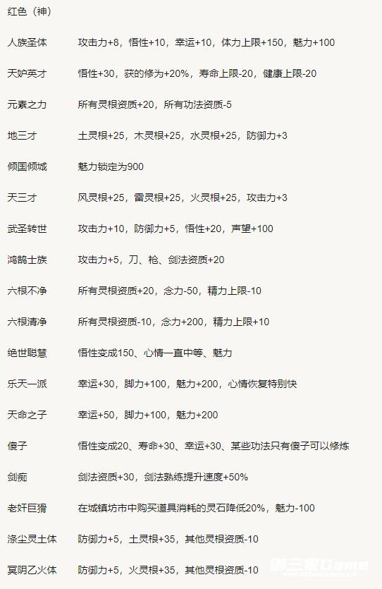 从图片可以看出来,红色资质的大部分资质都是加灵根和功法,少部分加攻击和防御。