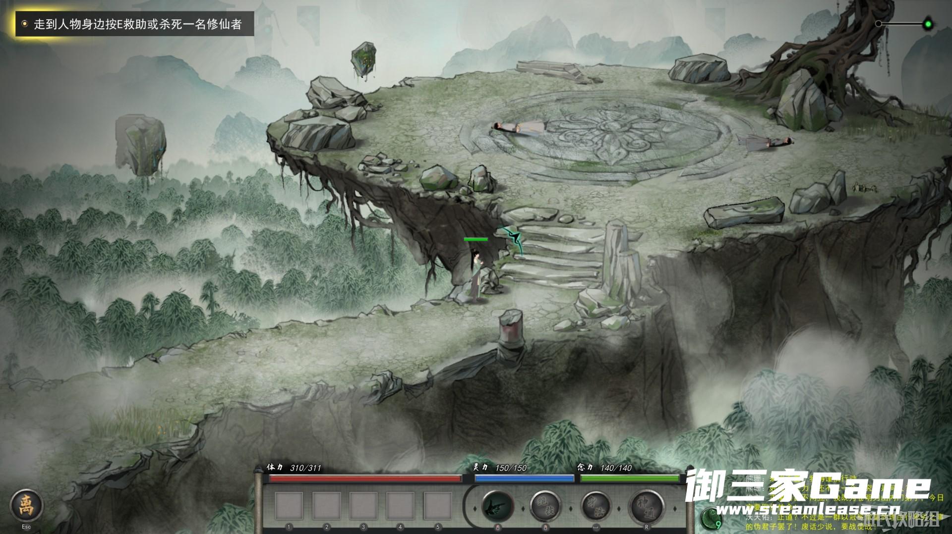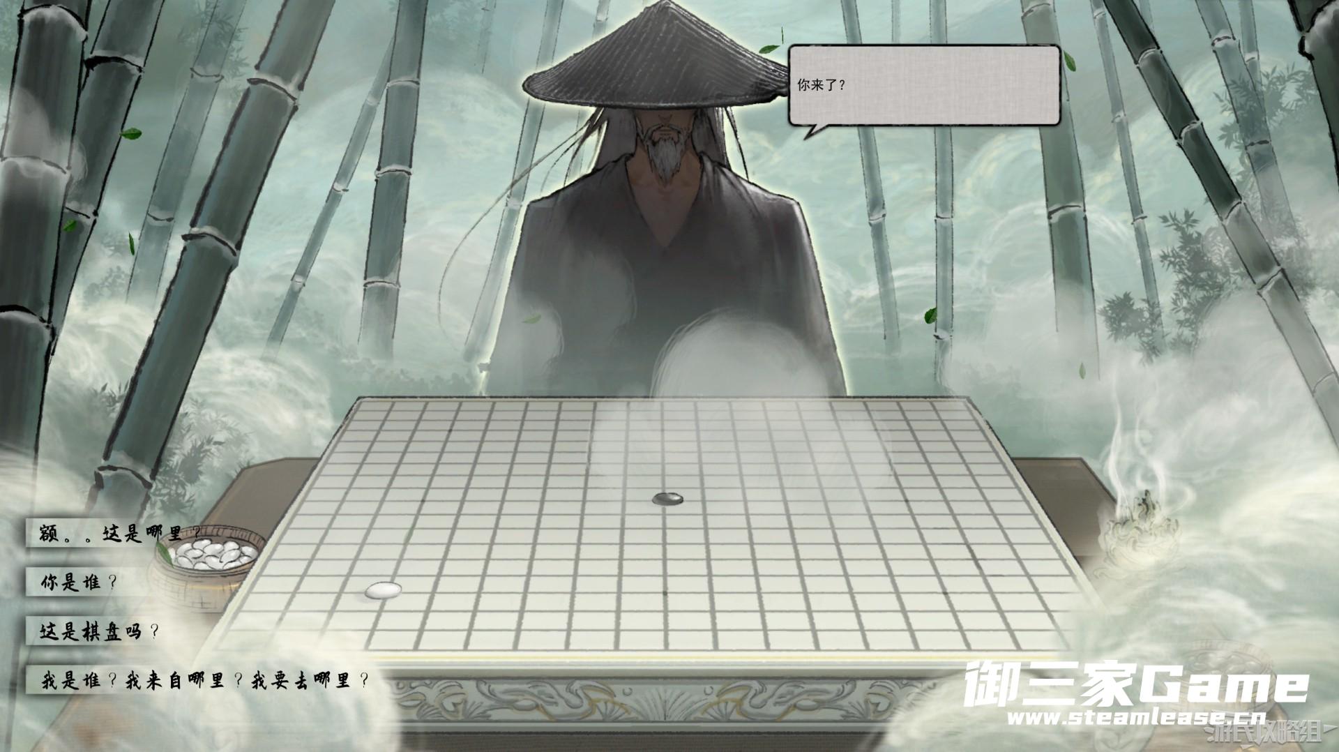 进入游戏后来到一片竹林之中,在石桌处见到一名下棋的老者,上前与他对话。