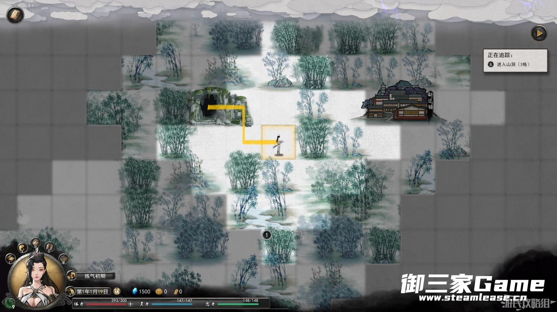 离开关卡后我们需要到附近的城镇中收集情报,在前往城镇的途中发现了一个山洞。当我们正在追踪某个任务时,地图上会出现黄线标记出线路,跟随线路前往目的地即可。